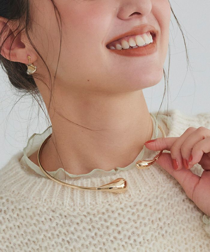 ・シンプルながらも両端に大きさの異なるドロップデザインがあり、洗練された雰囲気に