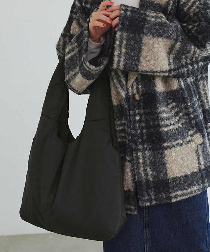 ゆとりのあるサイズ感で、ジム用にも対応してくれそうです。 内部にオープンポケットが1か所あるので便利です。 中綿の温かみのある素材で、これからの季節に出番が増えそうです。