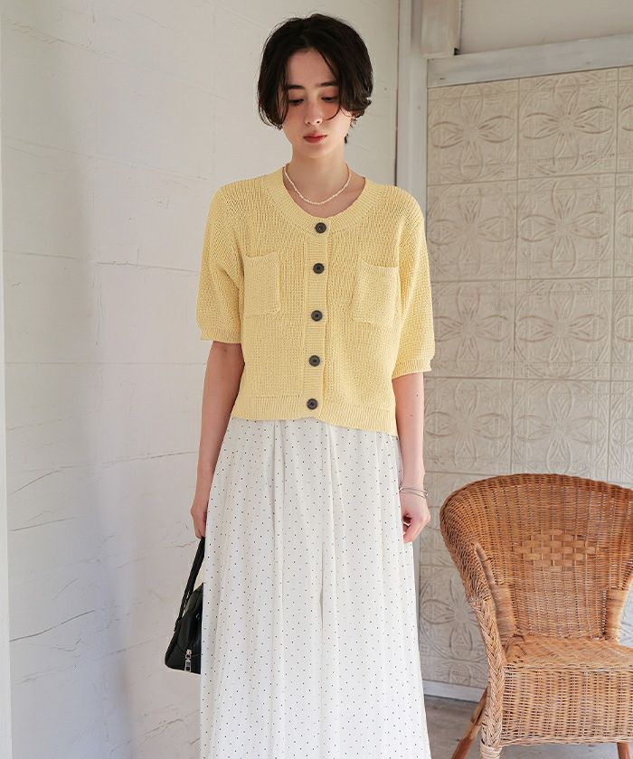 他の画像を見る 【2026ceremonycollection】【新作★期間限定20%OFF★4日11時カラ】 【titivate】【IGTV】 サマーツイードニットカーディガン 通常価格 ¥ 6,589 価格 ¥ 5,271 税込 販売期間 2025/12/04 11:00 〜 2025/12/12 10:59 お気に入りに登録する