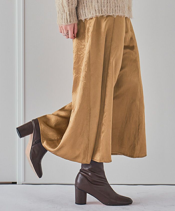・大人カジュアルなシルエットが魅力のセミマーメイドサテンスカート。