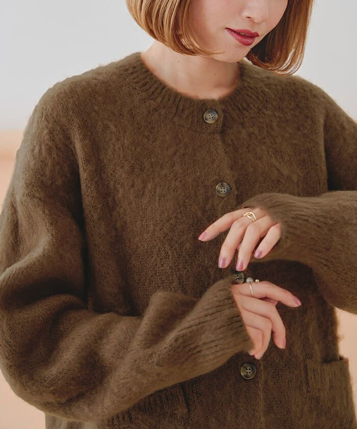 ・ふわっとした表面感のあるモヘアライクの素材がかわいいカーディガン。