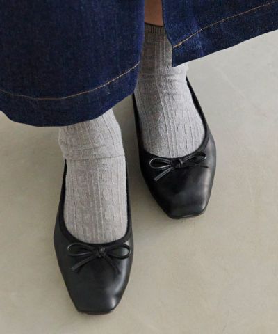 ・華奢なリボンデザインがポイントになったフラットバレエシューズ