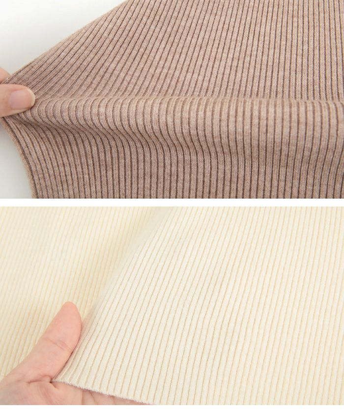 ・肌触りが良く、体のシルエットを拾いにくい厚みの高見えリブニット。