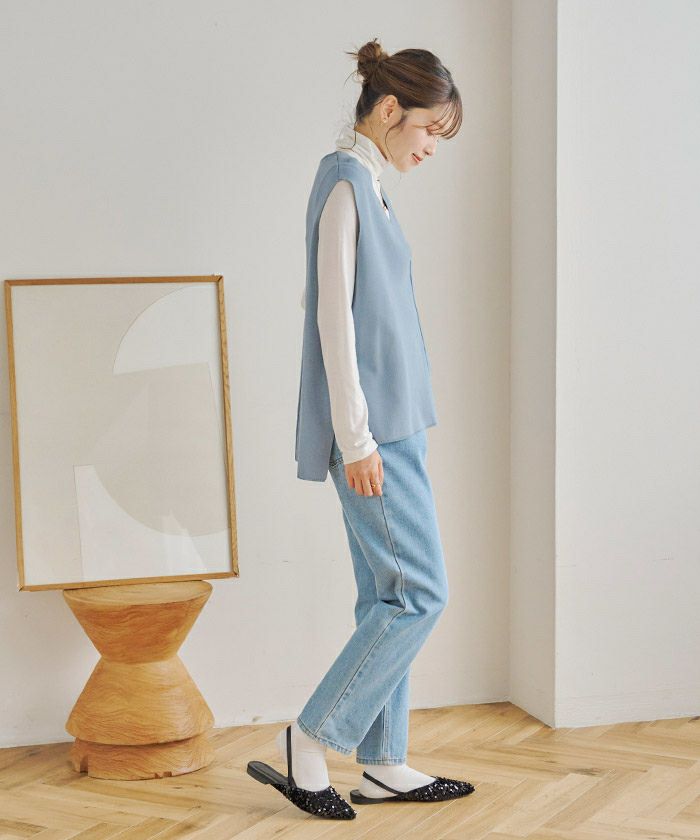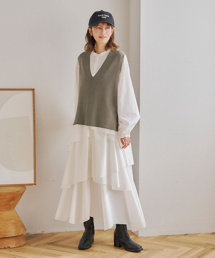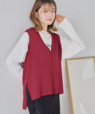 ・1枚でもレイヤードでも着用できてスタイリングの幅が広がるVネックニットベスト。
