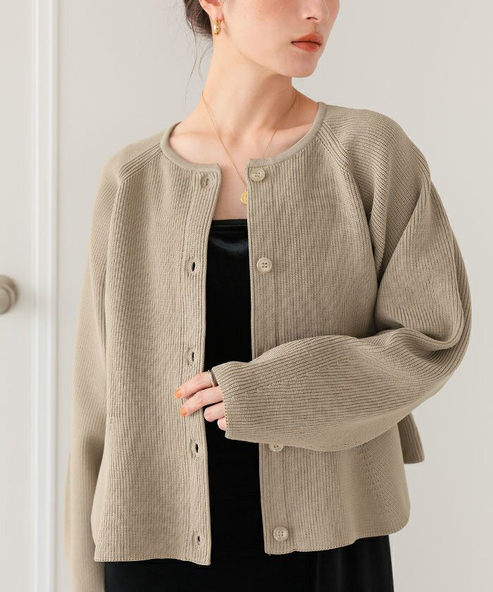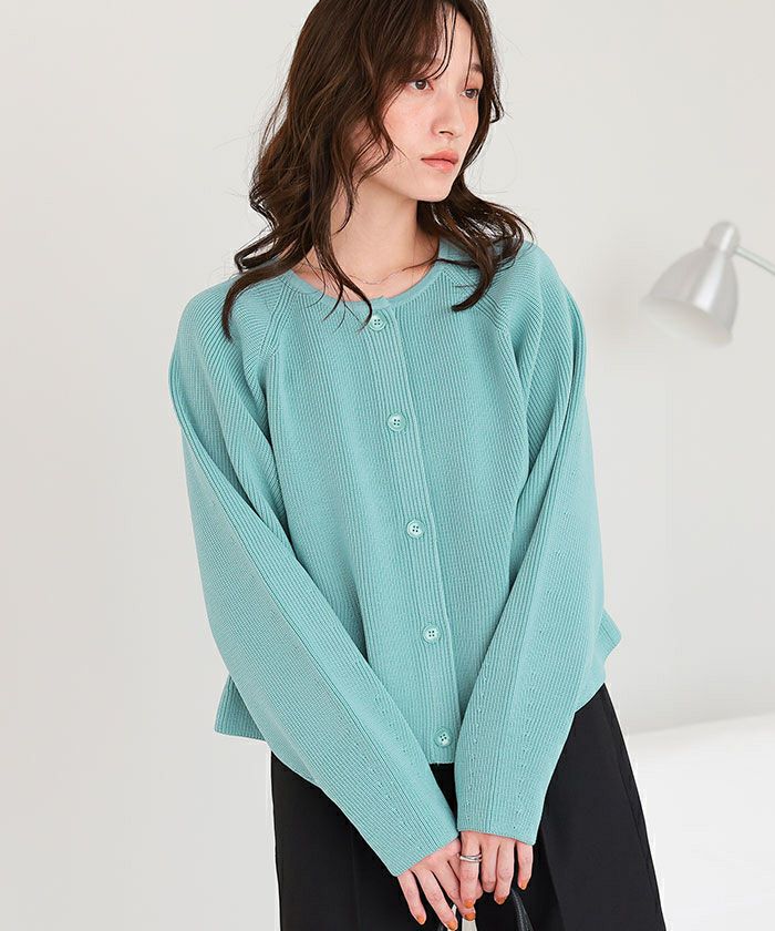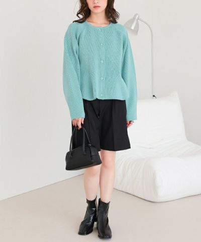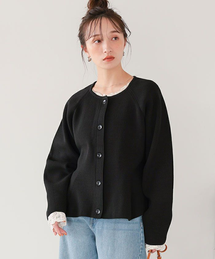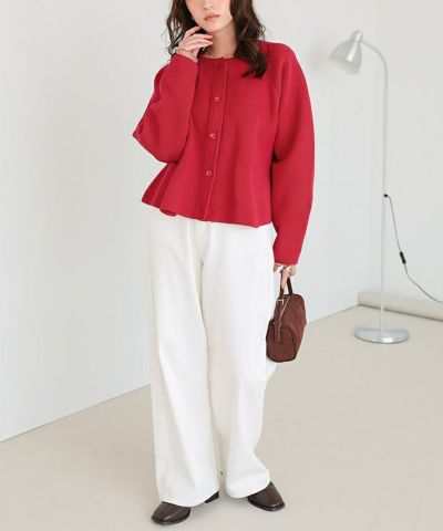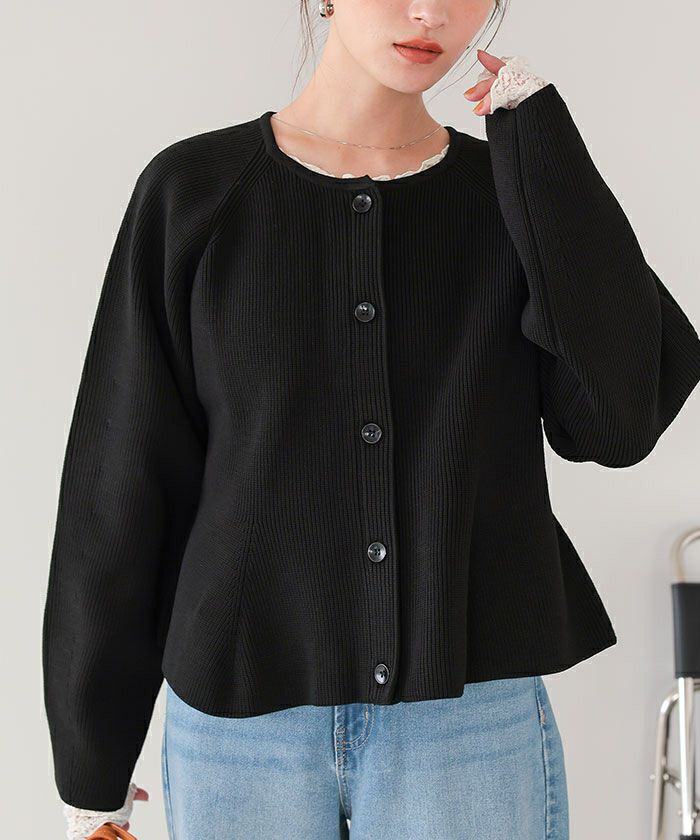 ・ペプラムシルエットが女性らしいニットカーディガン。