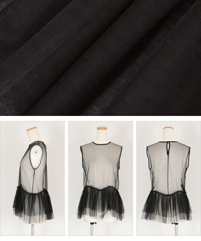 ・シンプルコーデにプラスするだけで映えるチュールトップス。