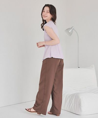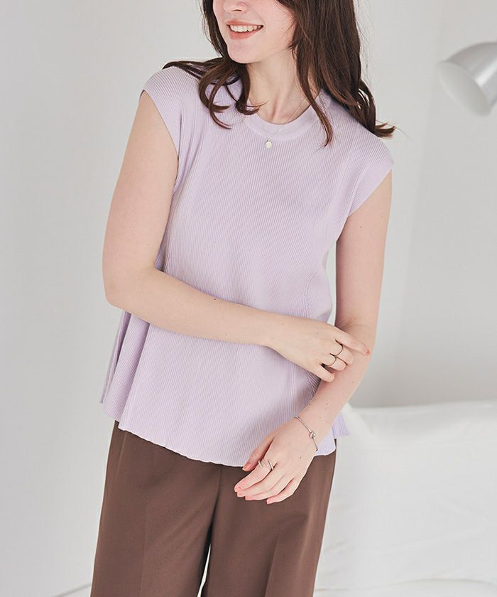 ・ウエストから広がるペプラムフレアデザインでスタイルアップを叶えるニットトップス。