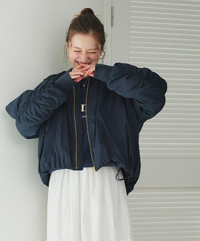 ネイビーを購入しました。ゴールドのファスナーと合わさりシックな色合いで素敵です。軽いのに暖かいし、裾を絞ると丸みを帯びたシルエットになり、とても可愛い。ただ届いた時のシワが酷くて、たたみジワだけではなく、どうやったらこんなにシワが付くのかというほどでした。なんとかアイロンで整えましたが、大変だったので、マイナス星1です。