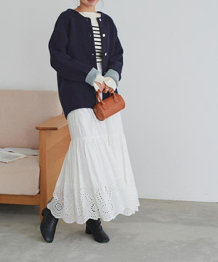 ・ダブルフェイスで裏面の色味も楽しめるニットコート/カーディガン