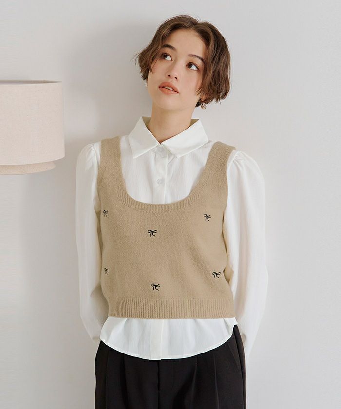 【期間限定★SALE】 リボン刺繍ベストセットブラウス