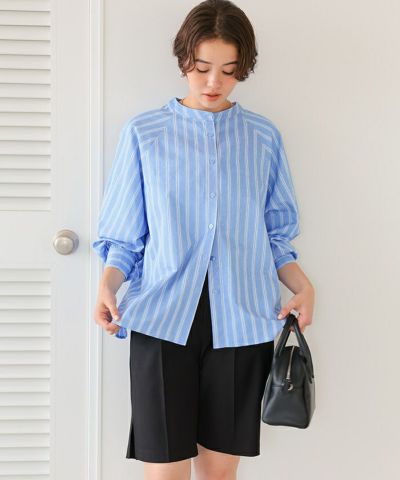 バックフリルバンドカラーシャツ