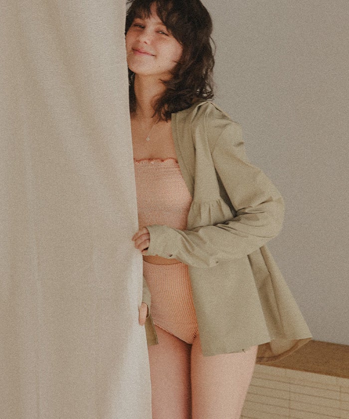 ・ギャザーデザインで大人可愛いを演出してくれるラッシュガード