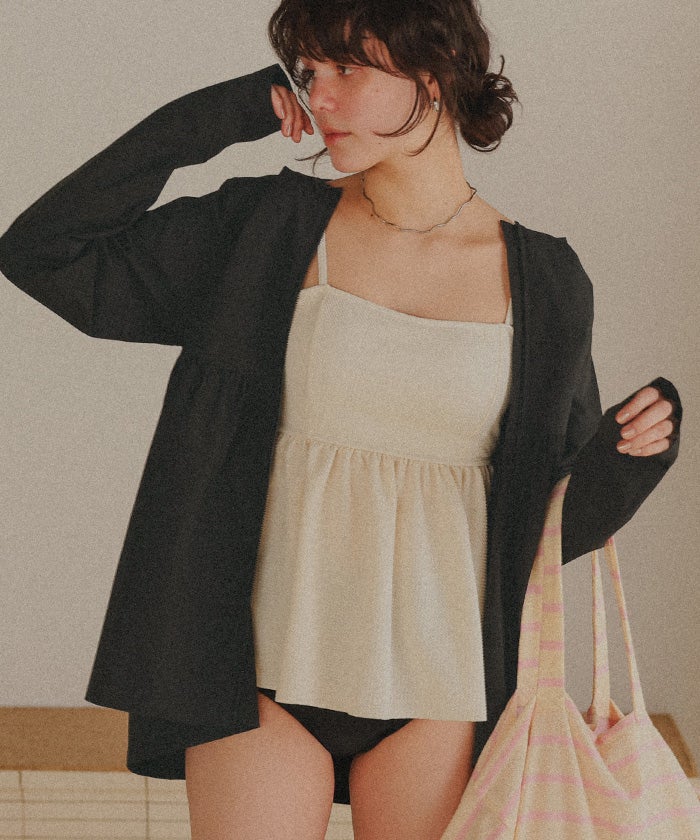 ヘムラインギャザーデザインパーカー/ラッシュガード