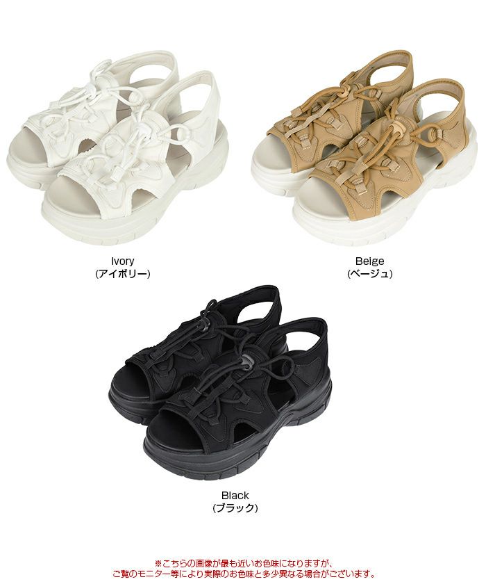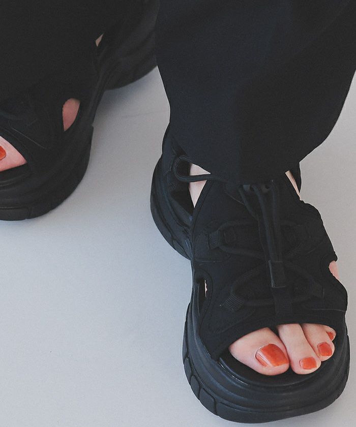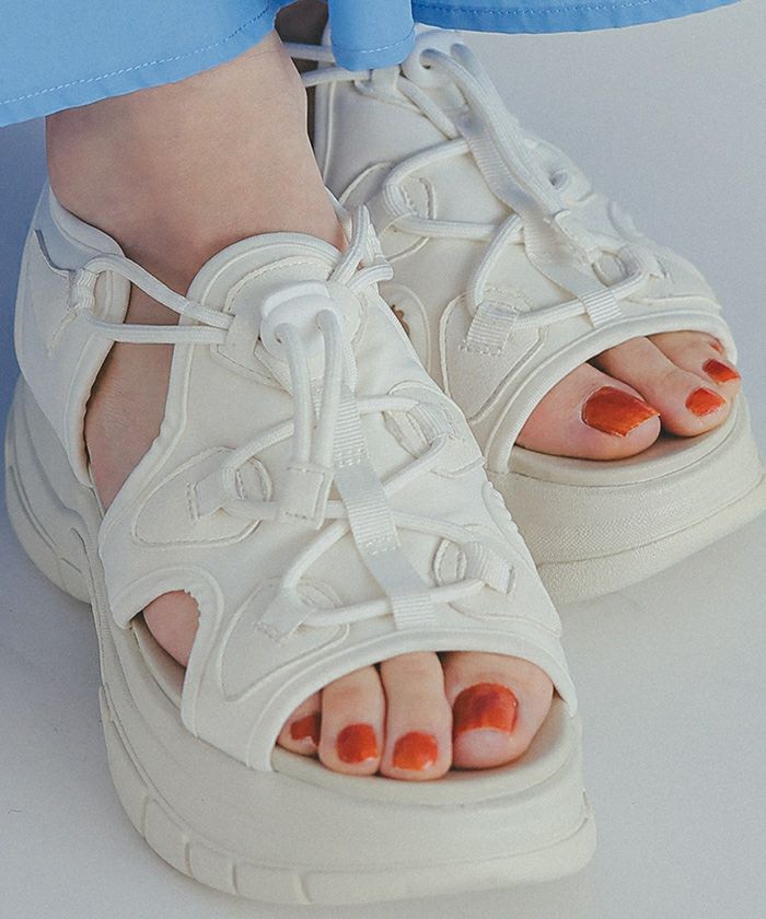 ・足元にカジュアルさをプラスできる、ドロスト機能付きレースアップサンダル