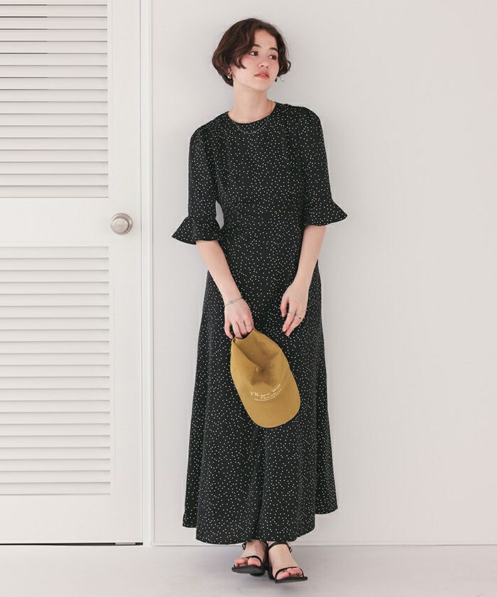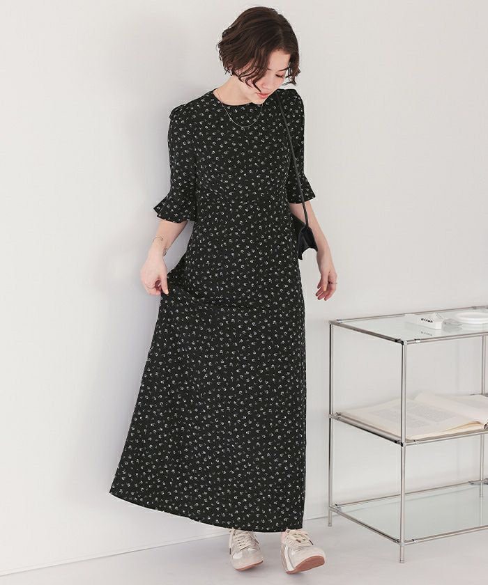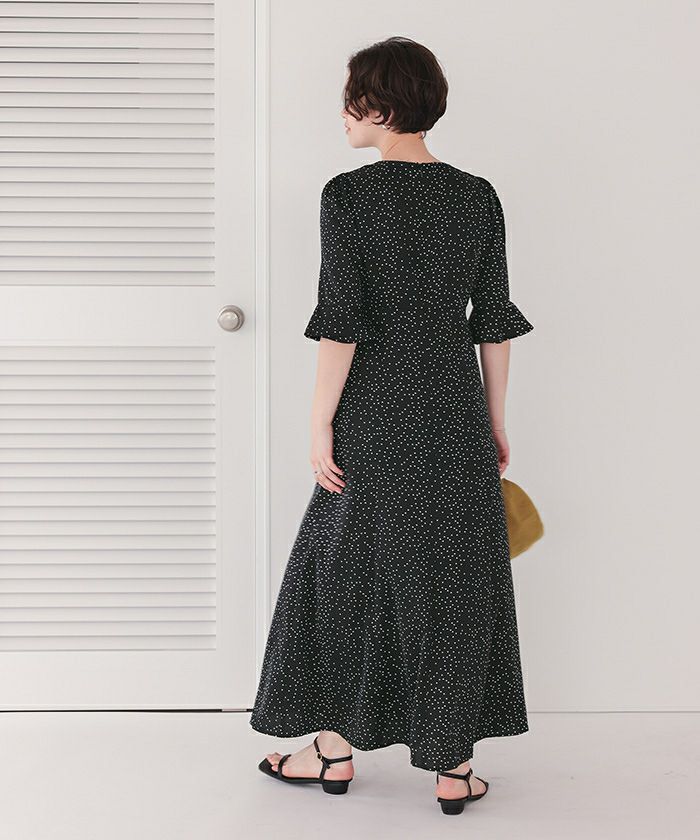 【選べるサイズ有り】【高身長さん向けサイズ有り】【低身長さん向けサイズ有り】【IGTV】 ハーフスリーブフレアワンピース