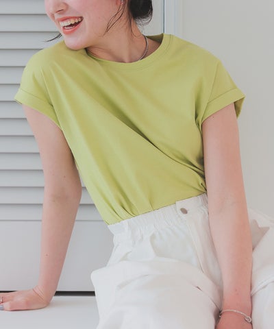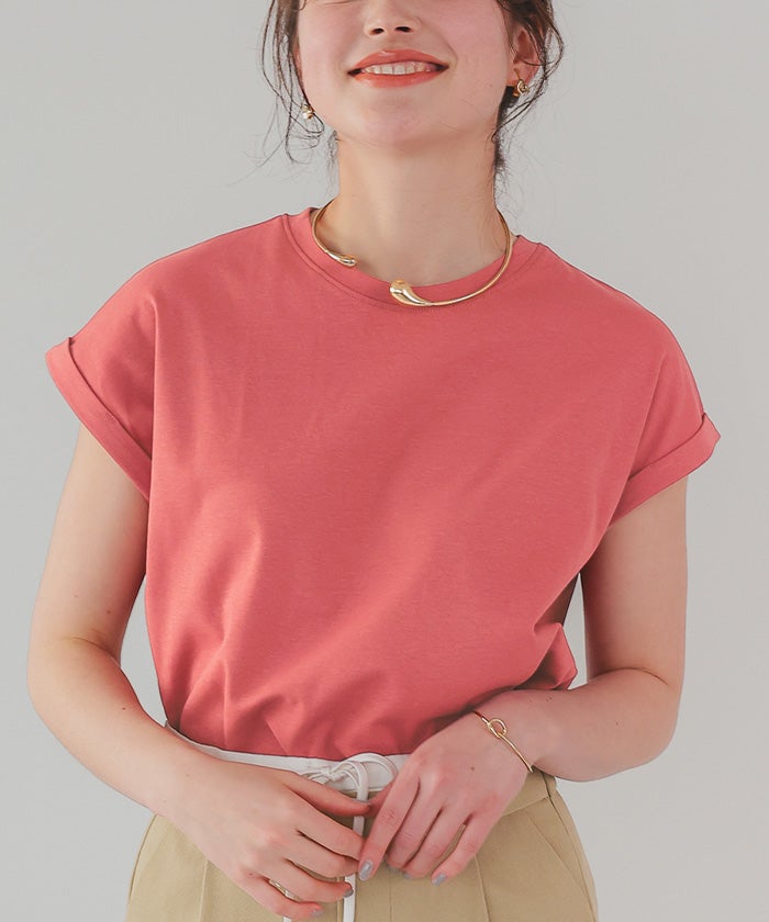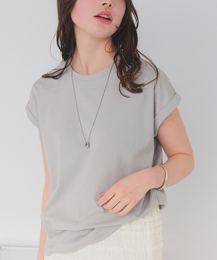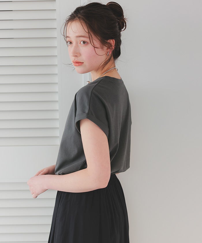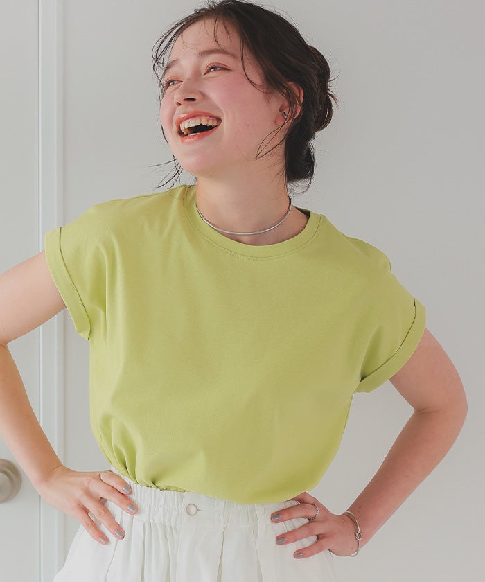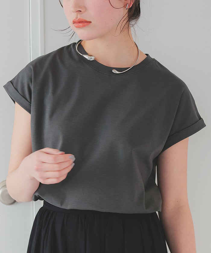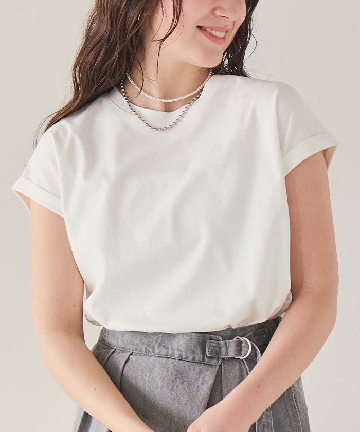・定番のクルーネックで着回し力の高さもありながら、折り返したダブルカフスでスタイリングにこなれ感が出るマストバイTシャツ