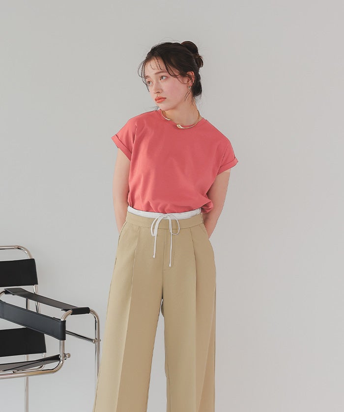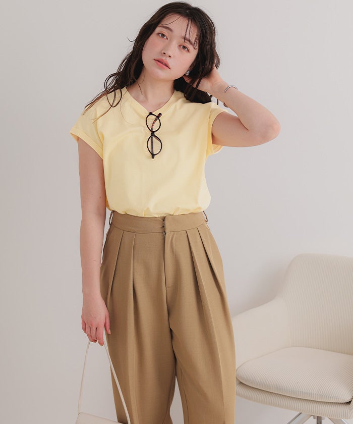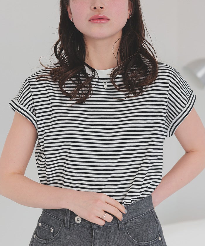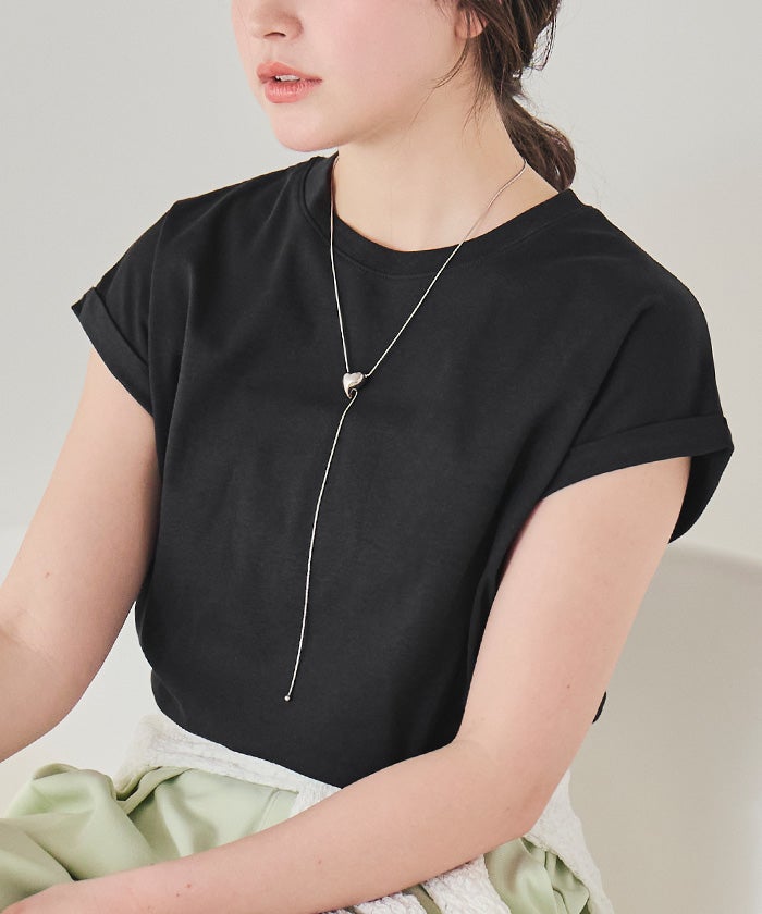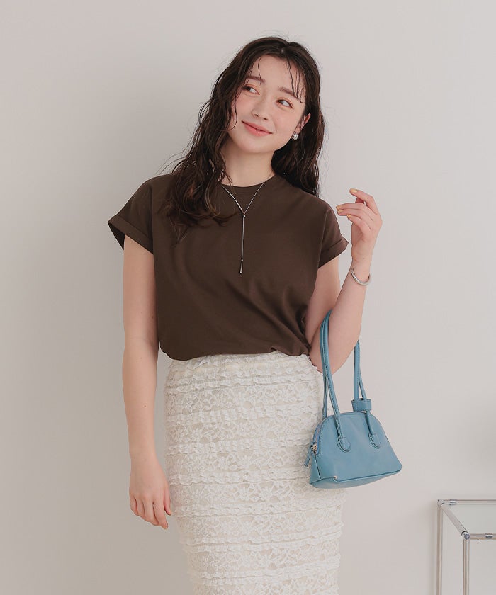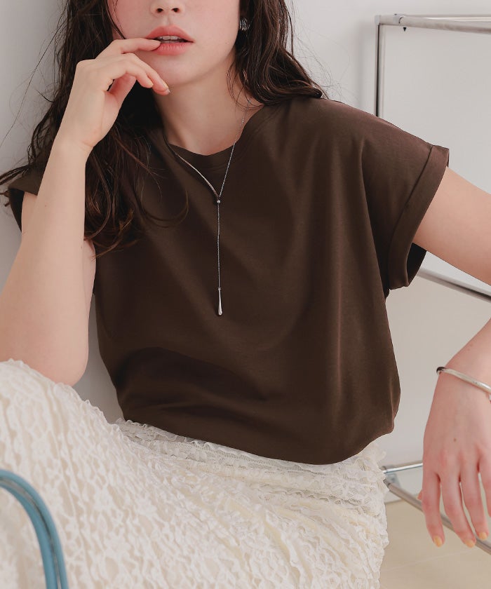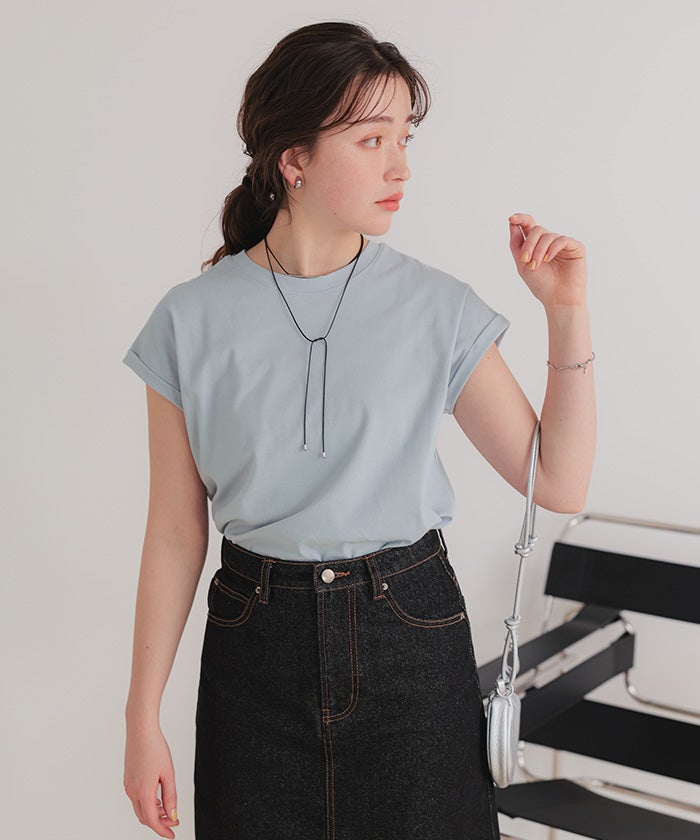 ・定番のクルーネックで着回し力の高さもありながら、折り返したダブルカフスでスタイリングにこなれ感が出るマストバイTシャツ