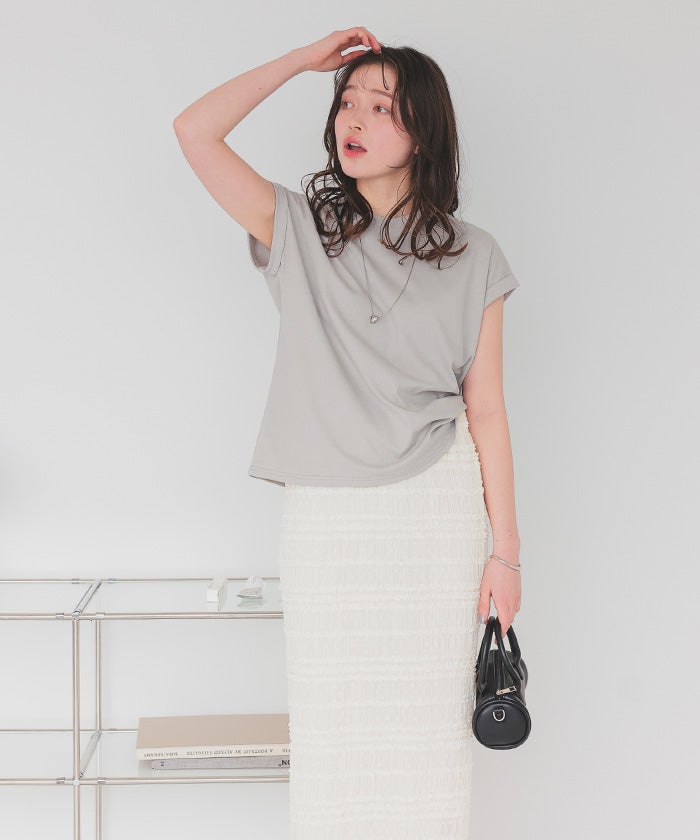 生地がサラッとしていて、フレンチスリーブで程よくゆったりしているのでとても涼しく着れます。この猛暑に重宝するので3色買いました。