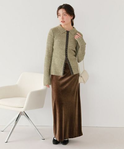 ホック付きポロ襟ミックスニット