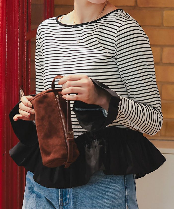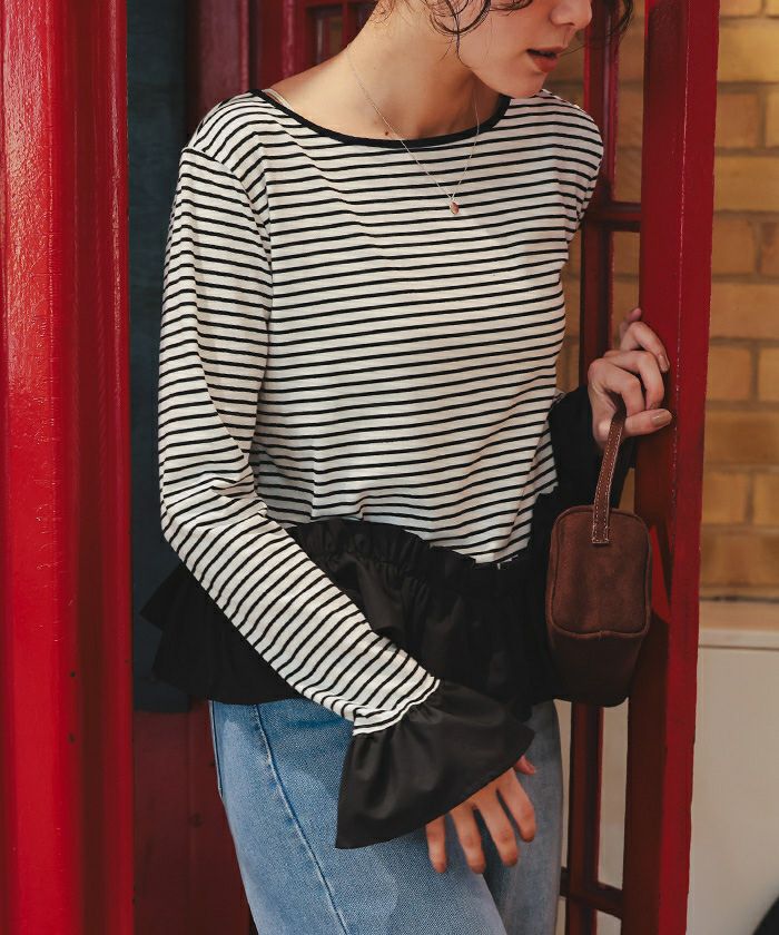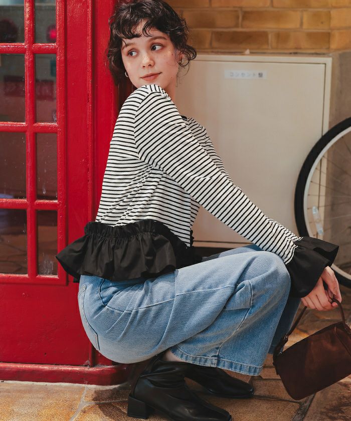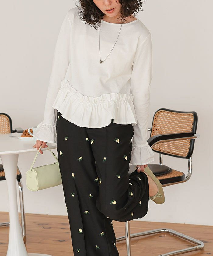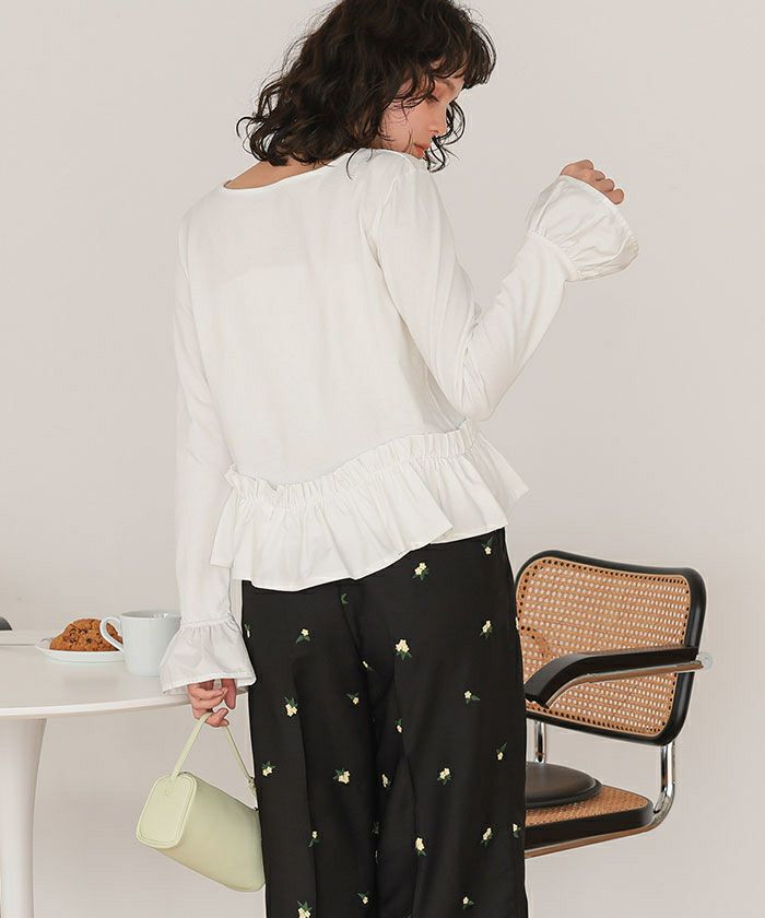 ・裾のイレヘムになった素材フリルが目を引き、1枚で着映えする
