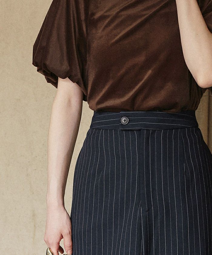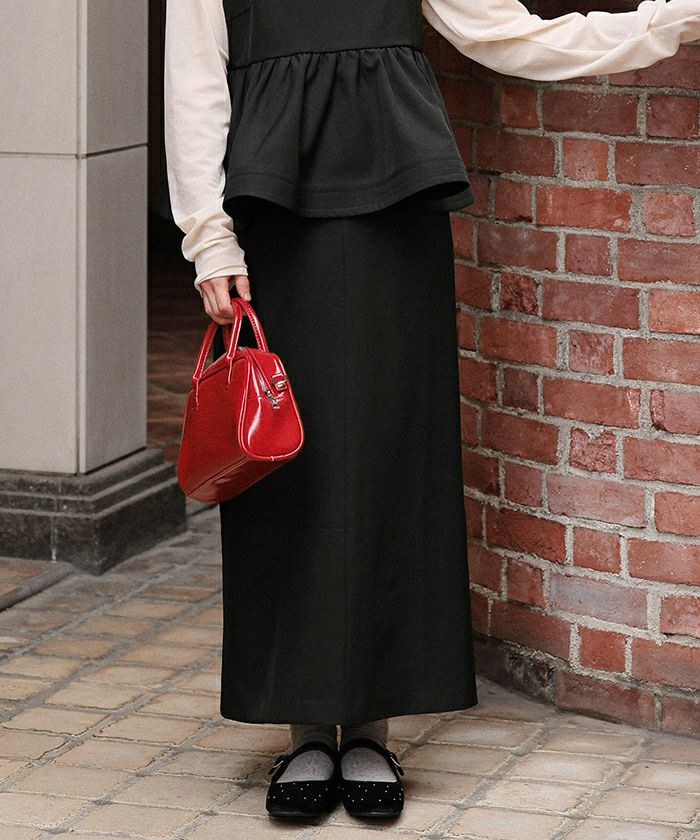 ・前立てのステッチやヒップのフェイクポケットなど、パンツっぽいデザインが可愛いスカート