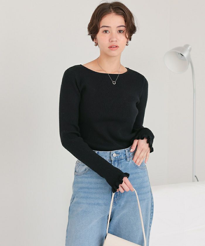 ・シンプルなコーディネートにも袖のチビフリルでアクセントをプラス