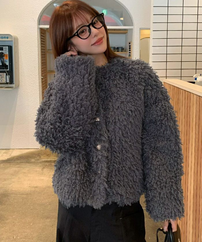 中綿が入っているので暖かさがあります。中に着込んでも大丈夫なくらいサイズに余裕があります。個人的に怒肩なので、結構ボリュームがあるように見えました。ファーが柔らかいので、使っていくうちに毛が寝てしまうように思います。ボタンが軽いのではめたり、外したりがやりにくかったです。濃いめの色のデニムに合わせて着てみましたが、ブラウンが明るめなので、見た目重すぎずかわいく着れます。プードル感が可愛くて気に入りました。今シーズンたくさん着たいと思います。