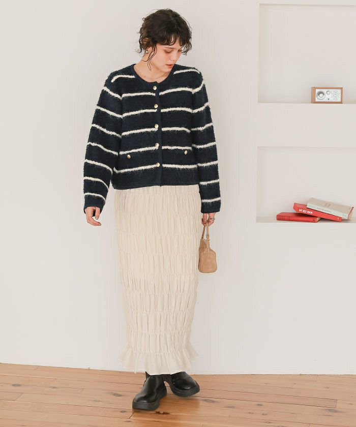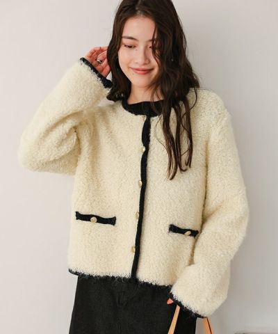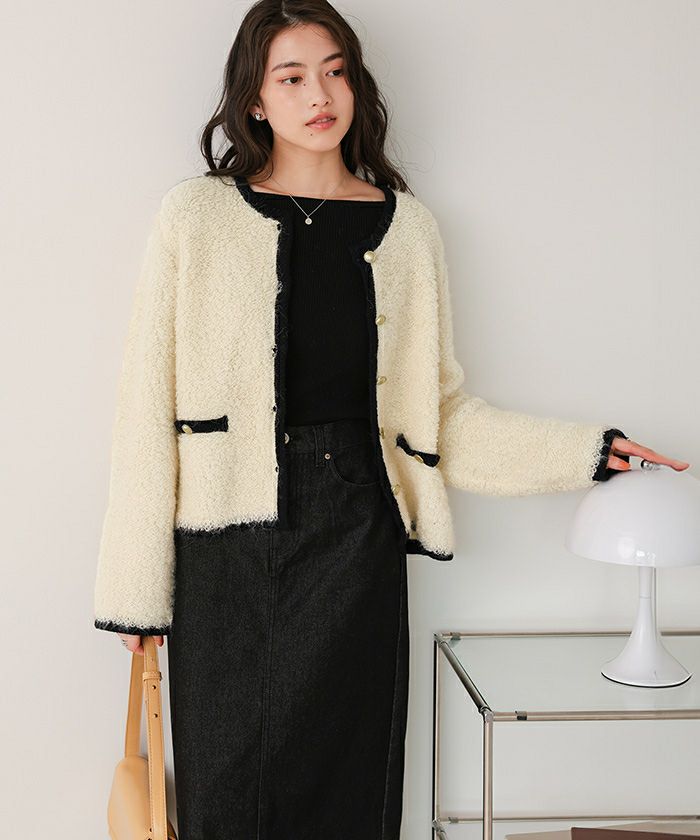 ・ツイード風に見える編み地が高見えさせてくれる