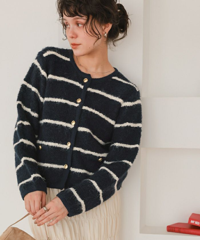 ・ジャケット風のデザインで、編み地もしっかりしてるのできちんと見せたいコーデにも使える