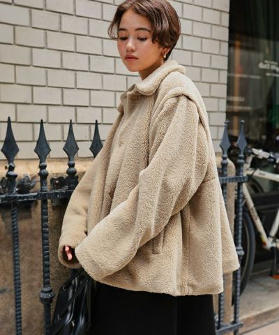 袖の取り外しが出来て、アレンジが効くので着こなしの幅が広がります! ボア素材のフレアシルエットも珍しいですね。 ブラックとベージュで迷いましたが、今回は落ち着いた雰囲気のブラックにしました。 まだ届いていませんが、期待を込めて★5つにしました。