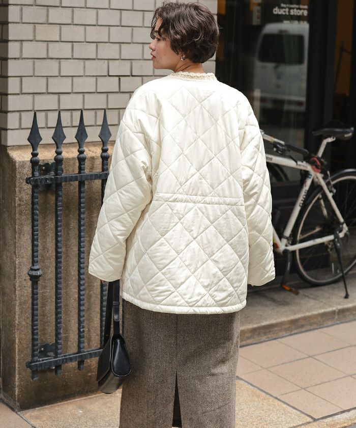 保育園の送り迎えにパッと羽織れる上着を探していました! 中綿で軽いのに暖かいです。ノーカラーなので真冬はマフラーもしやすそうです。