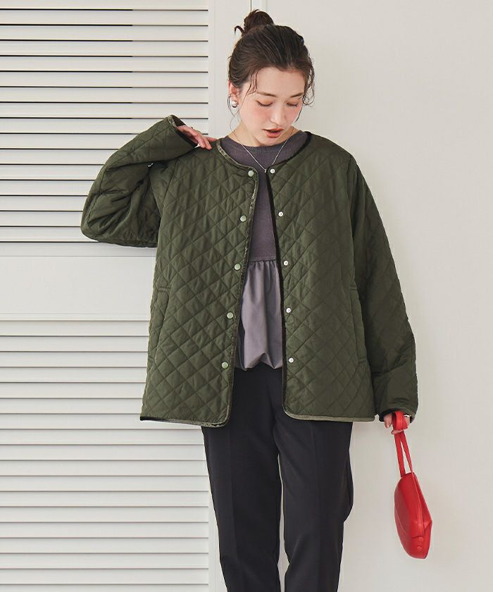・襟は取り外し可能。クルーネックのキルティングジャケットとしても着用出来ます