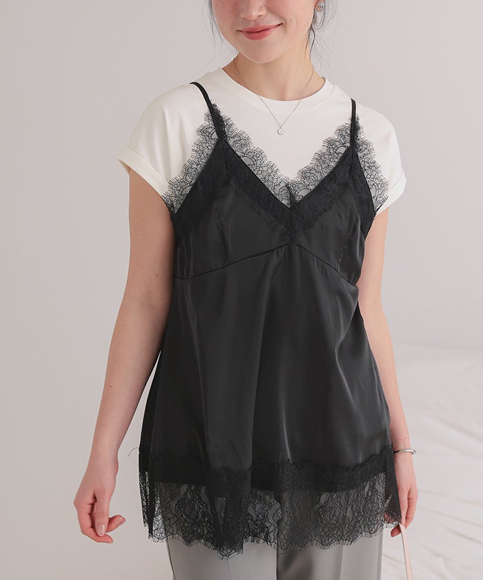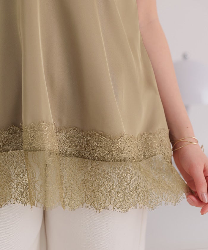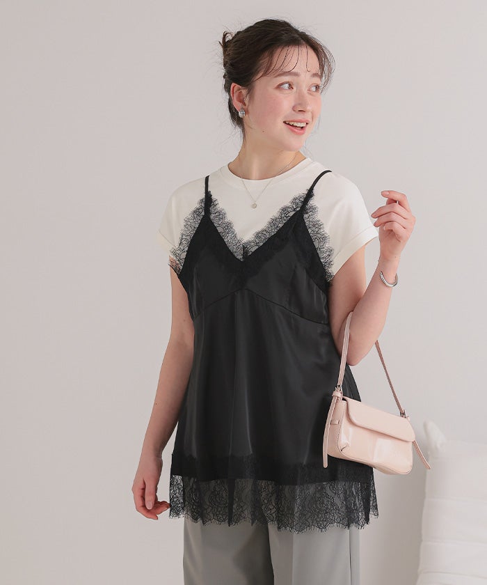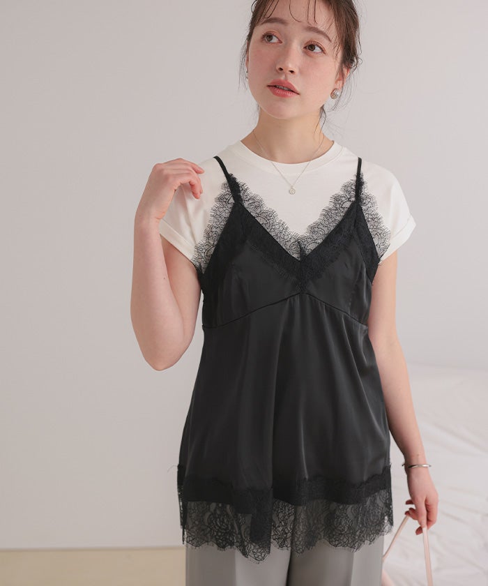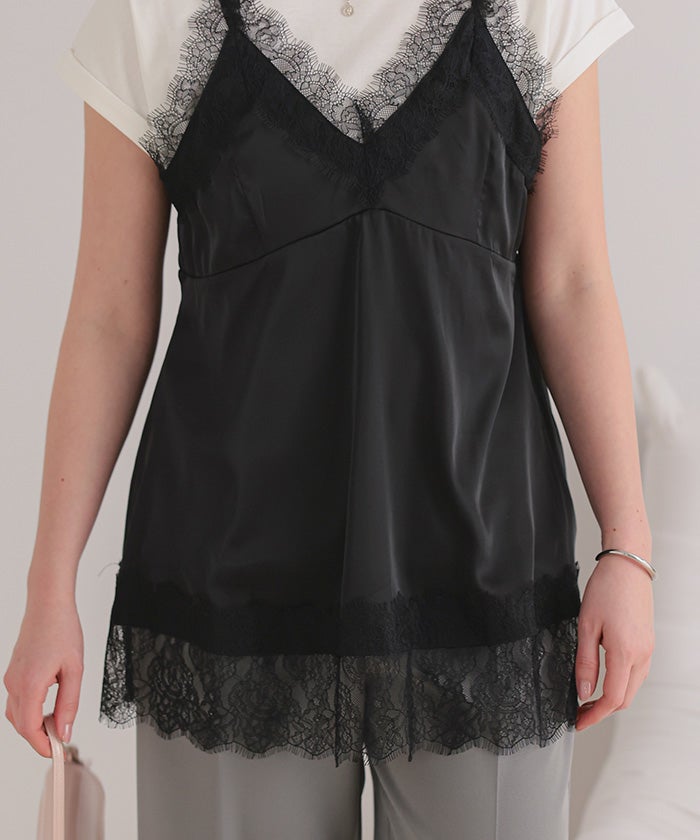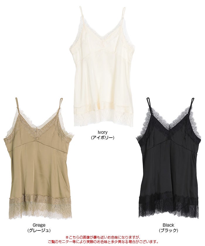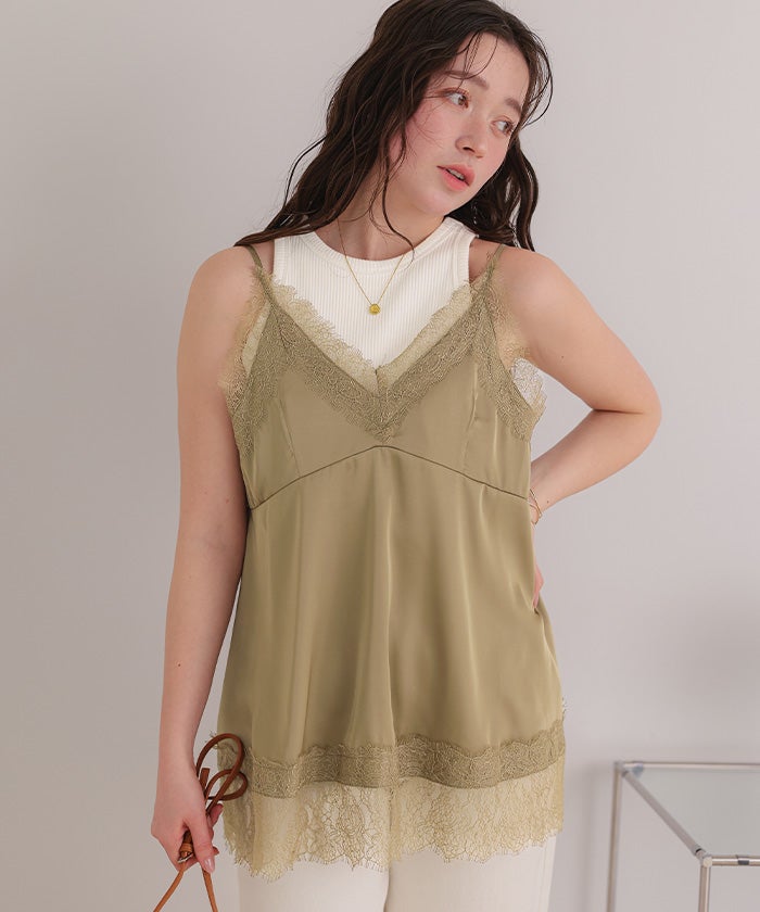 レースサテンキャミソールトップス