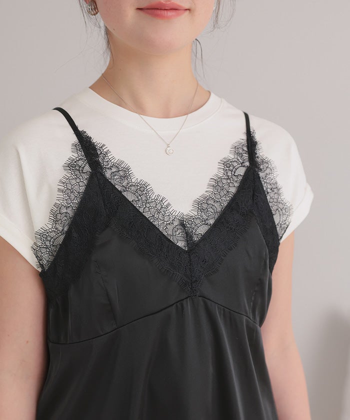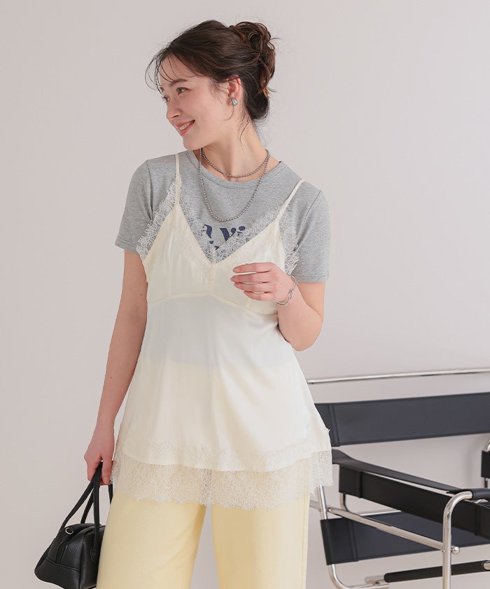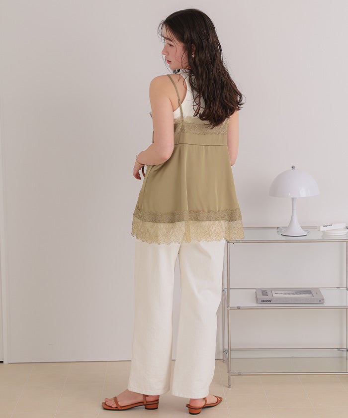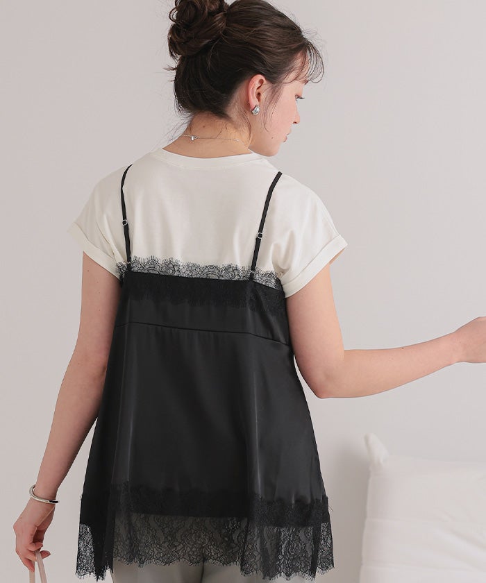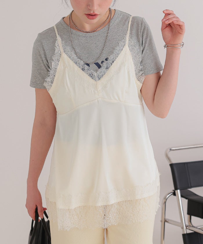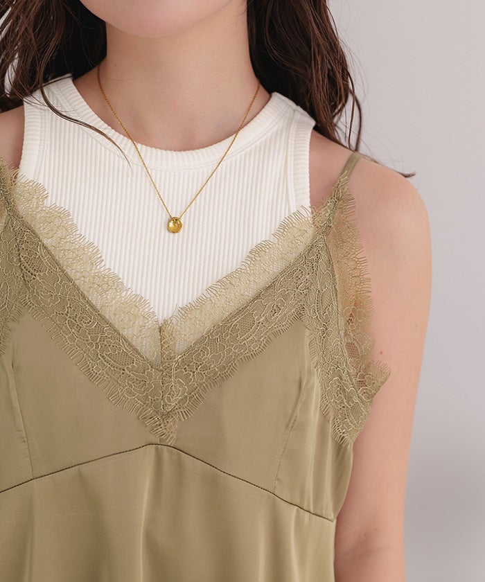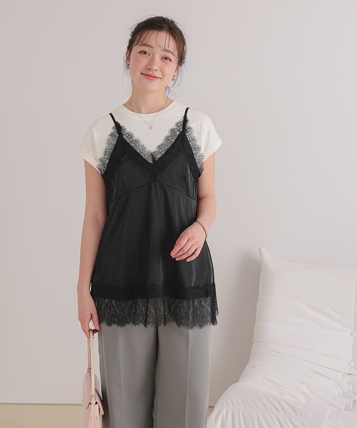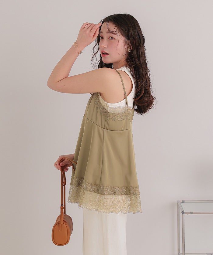 レースサテンキャミソールトップス