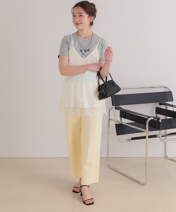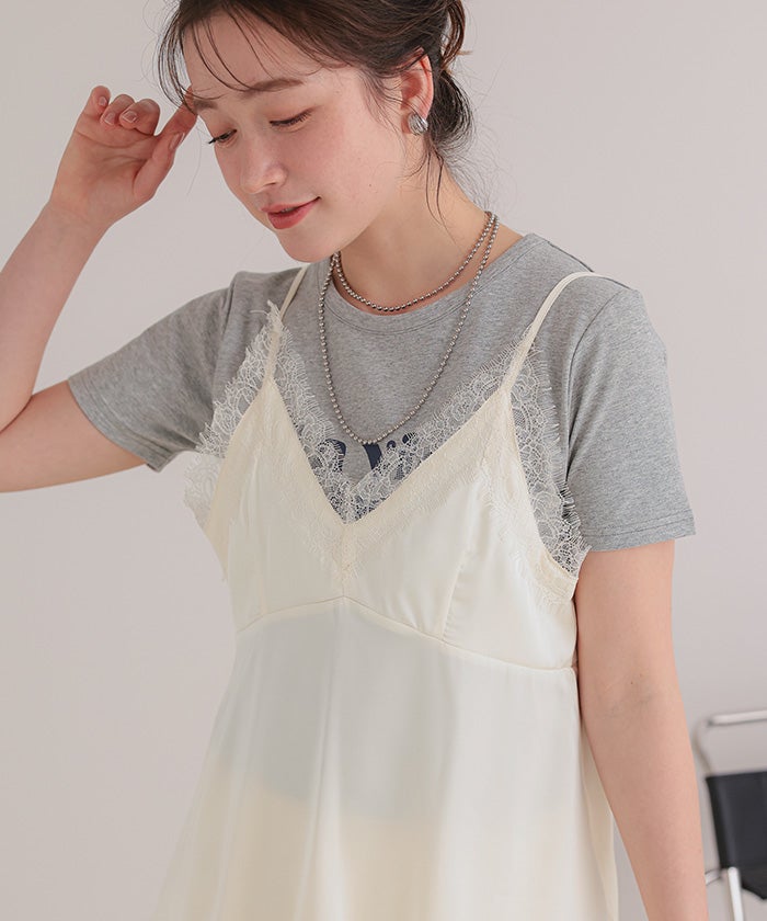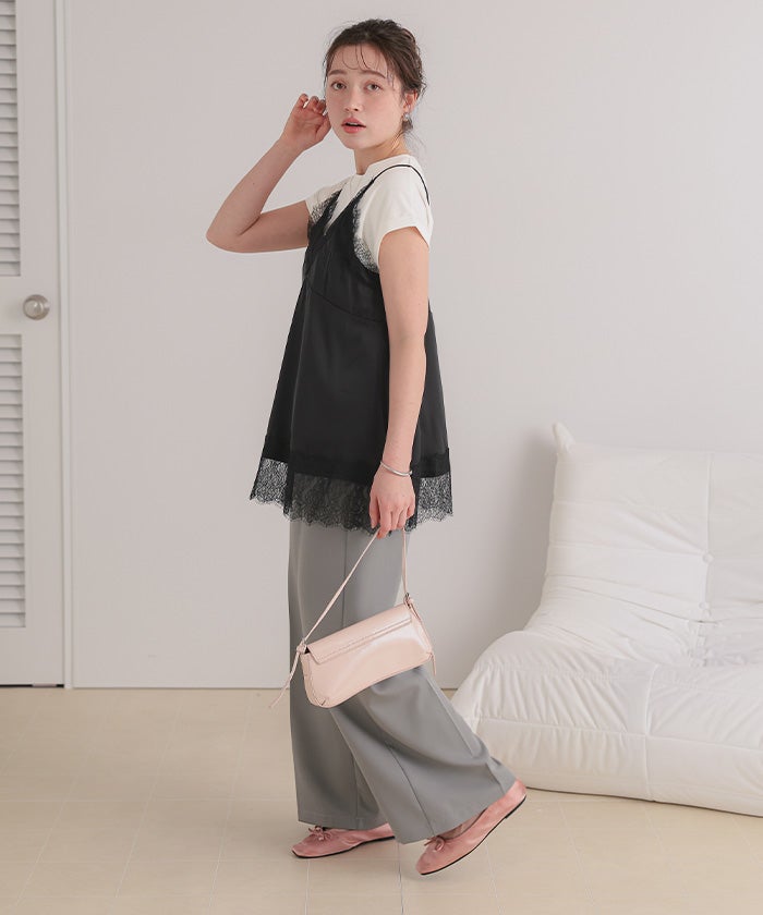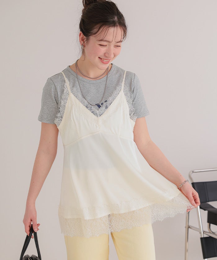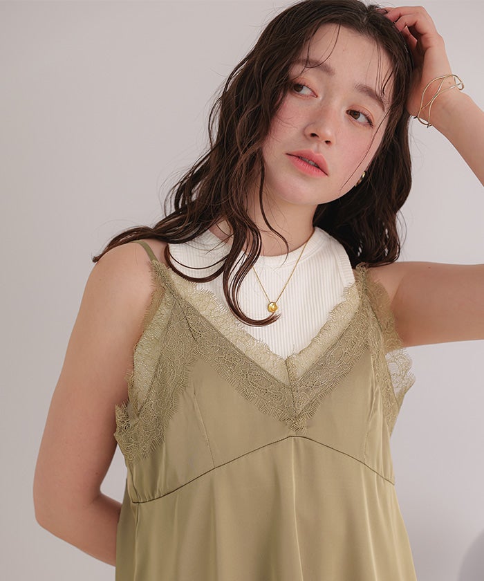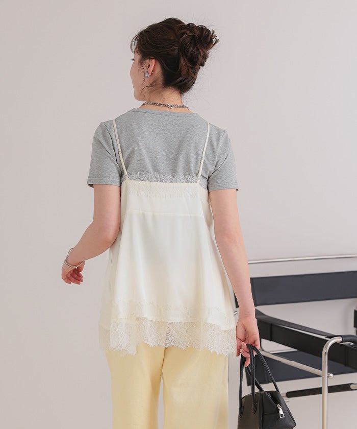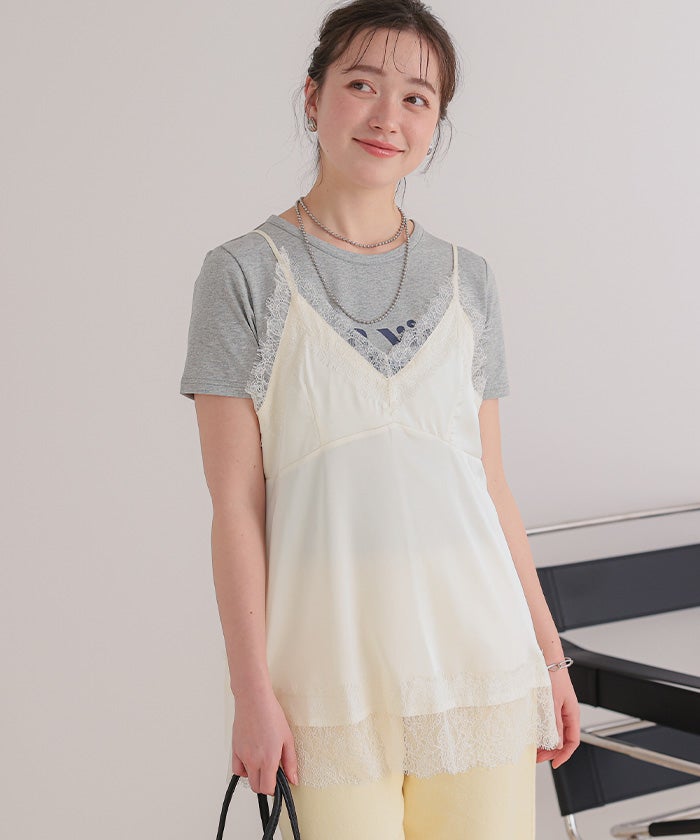 レースサテンキャミソールトップス