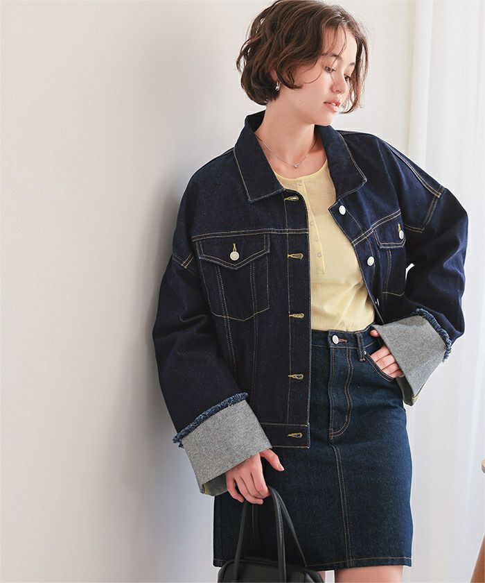 ・袖のロールアップデザインでこなれ感が出るデニムジャケット。