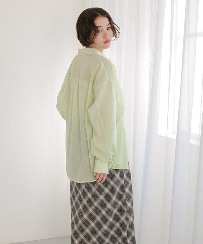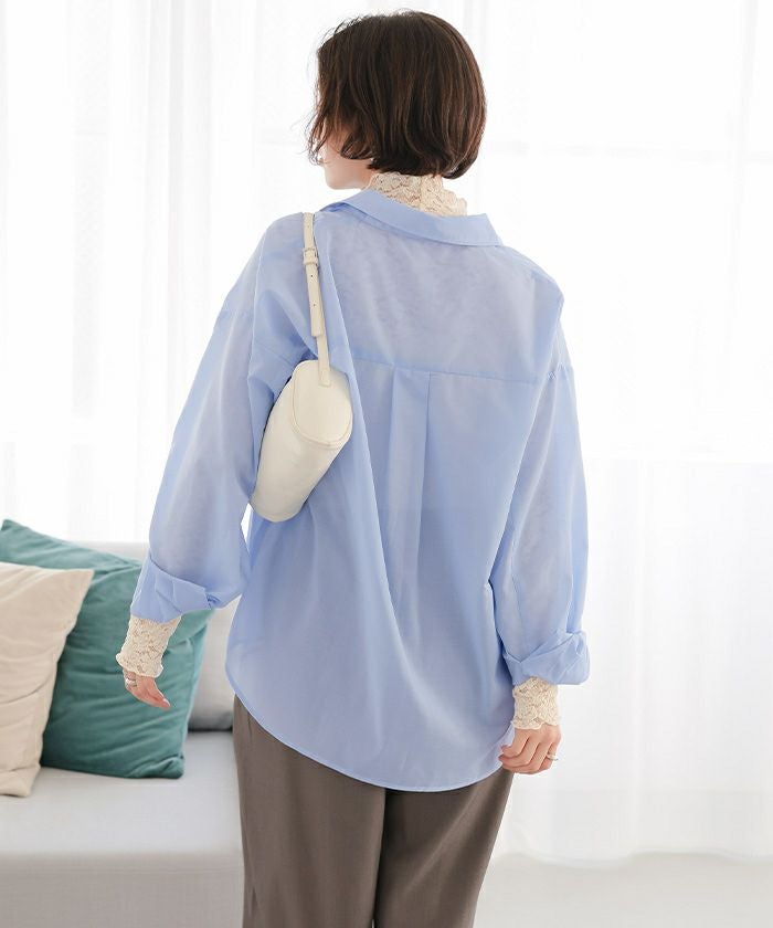 ・軽やかな透け感が魅力のシアーシャツ。1枚で抜け感と上品さをまとえる旬顔アイテム