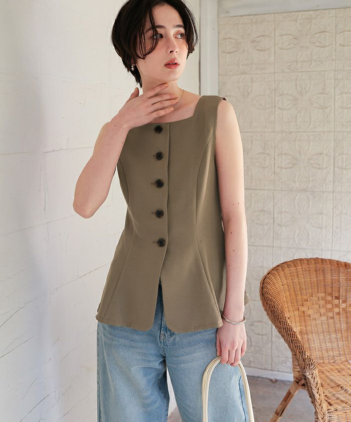 ・リネンライクな表情がシーズンムードを高める、軽やかで涼しげなノースリーブジレ