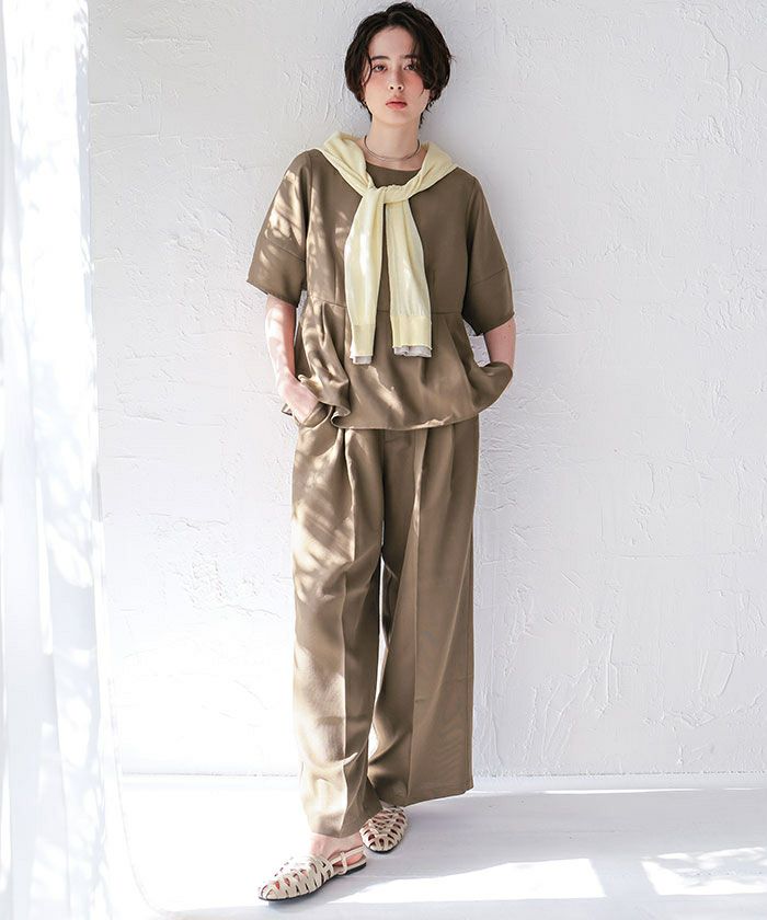 ・タックデザインにペプラムシルエットが女性らしく見せてくれます◎