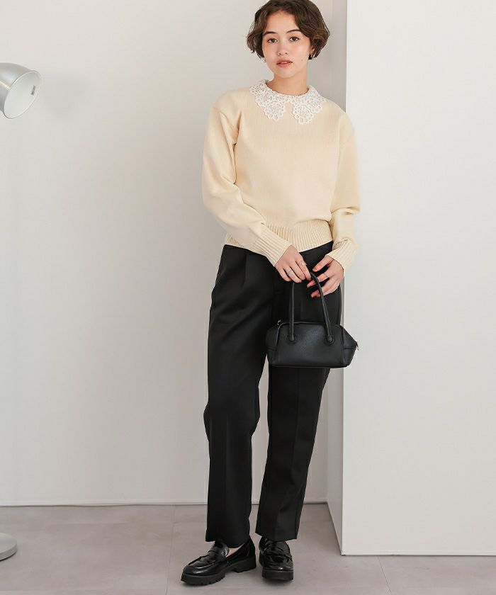 ・クラシカルな取り外しのできる襟デザインで、きちんと感とトレンドを両立したニットプルオーバー