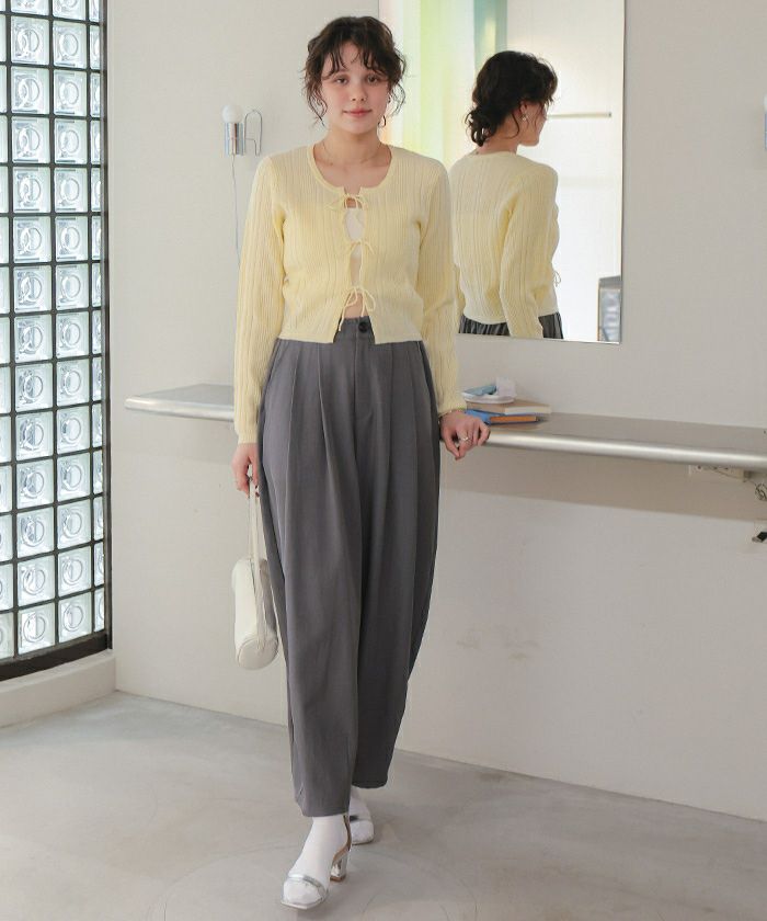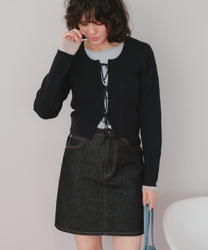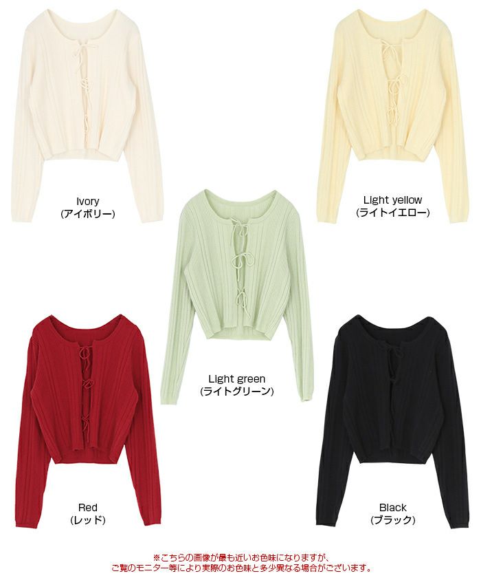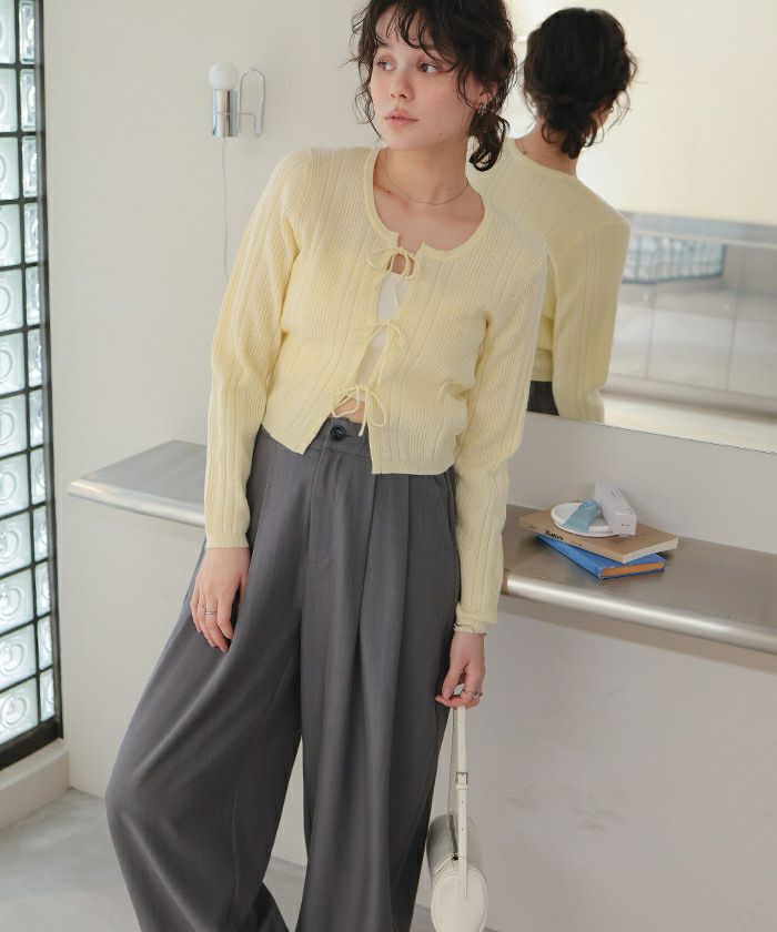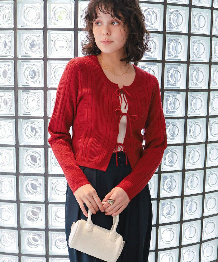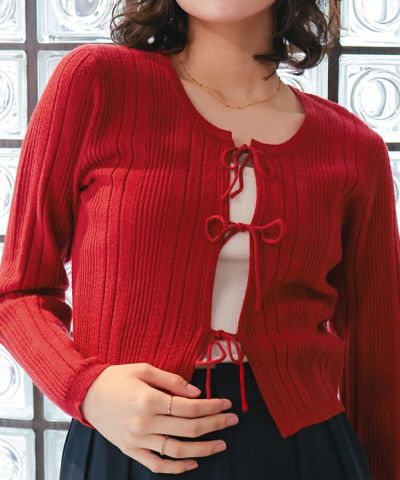 ・リボンディテールが目を惹くリボンデザインニットカーディガン