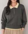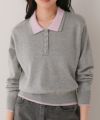 ・襟がドッキングされたデザインで1枚で着映えするニットトップス