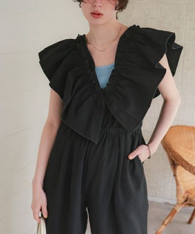 ・たっぷりフリルが揺れるデザインで、着るだけでフェミニンムードが高まる主役級オールインワン