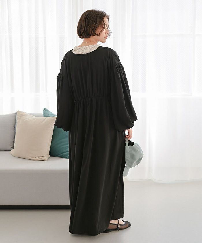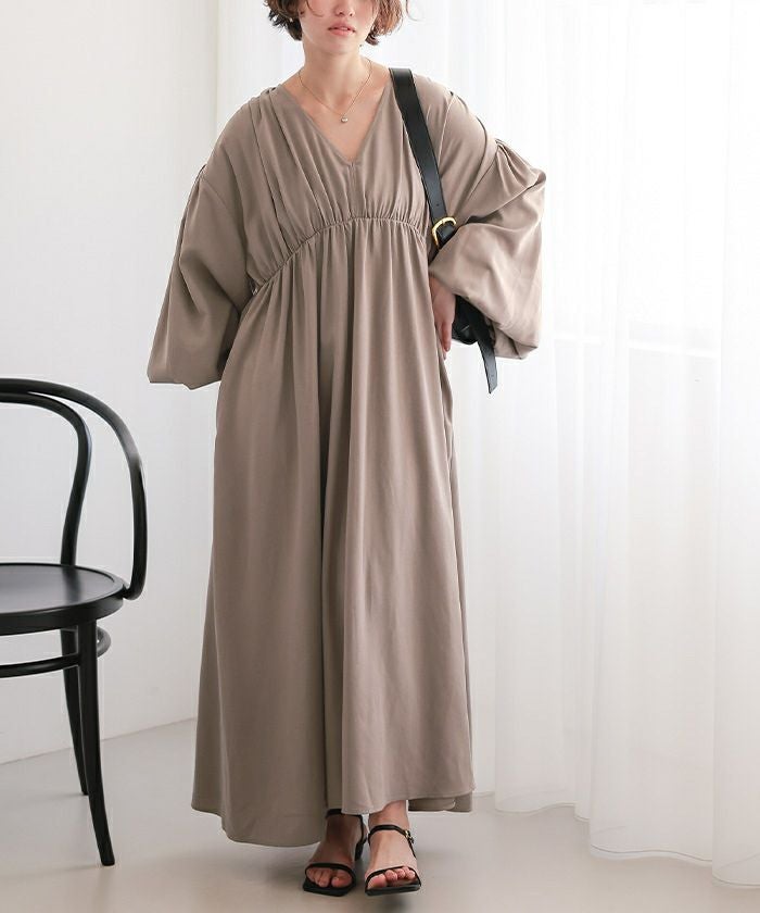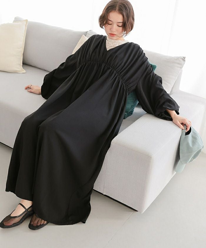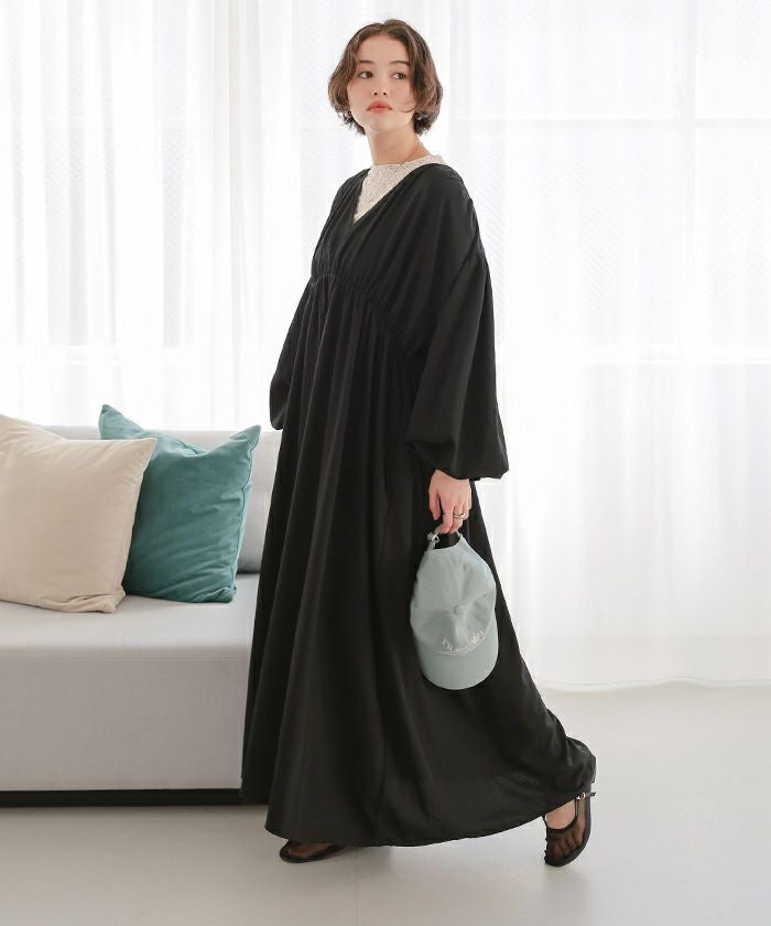 Vネックカフタンワンピース