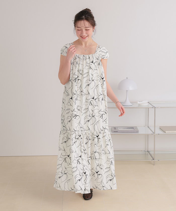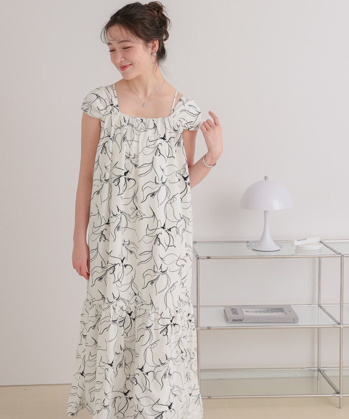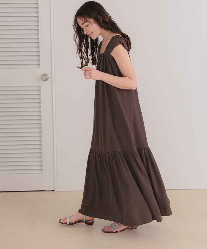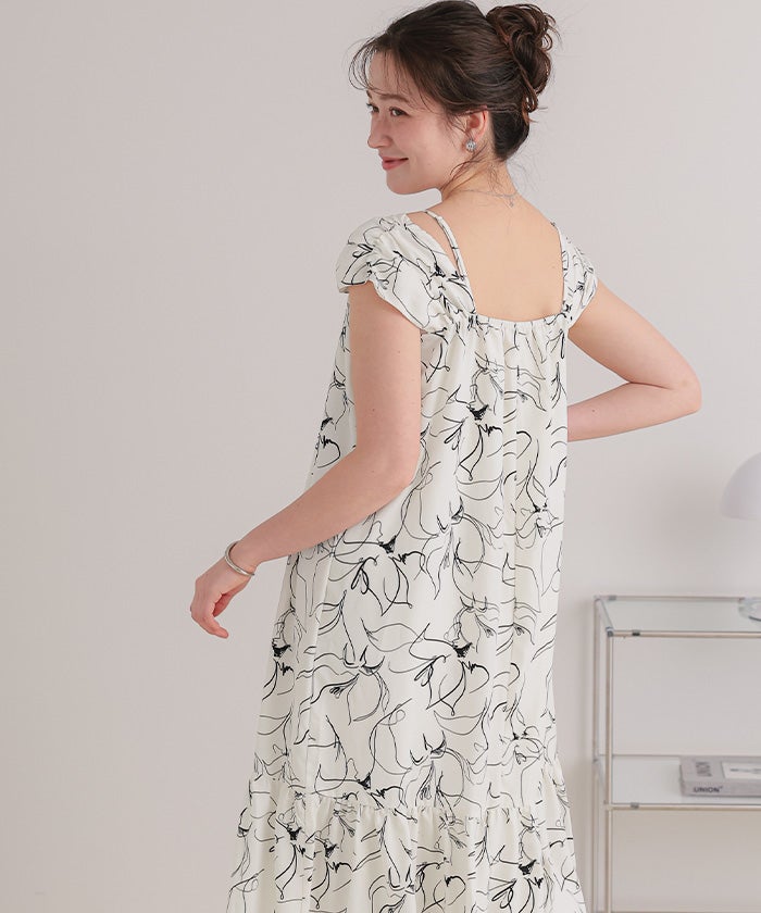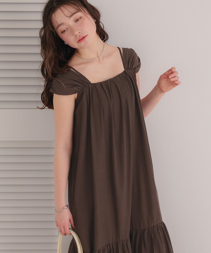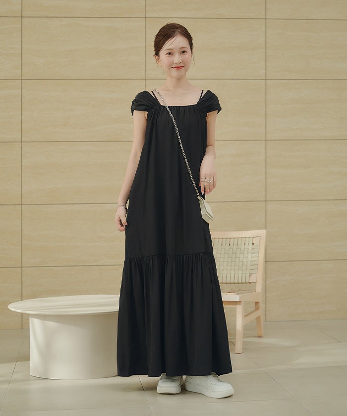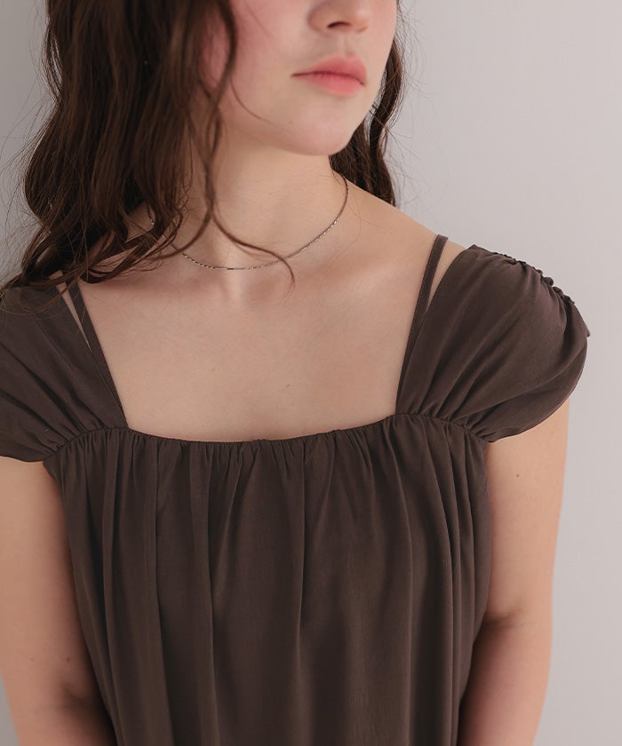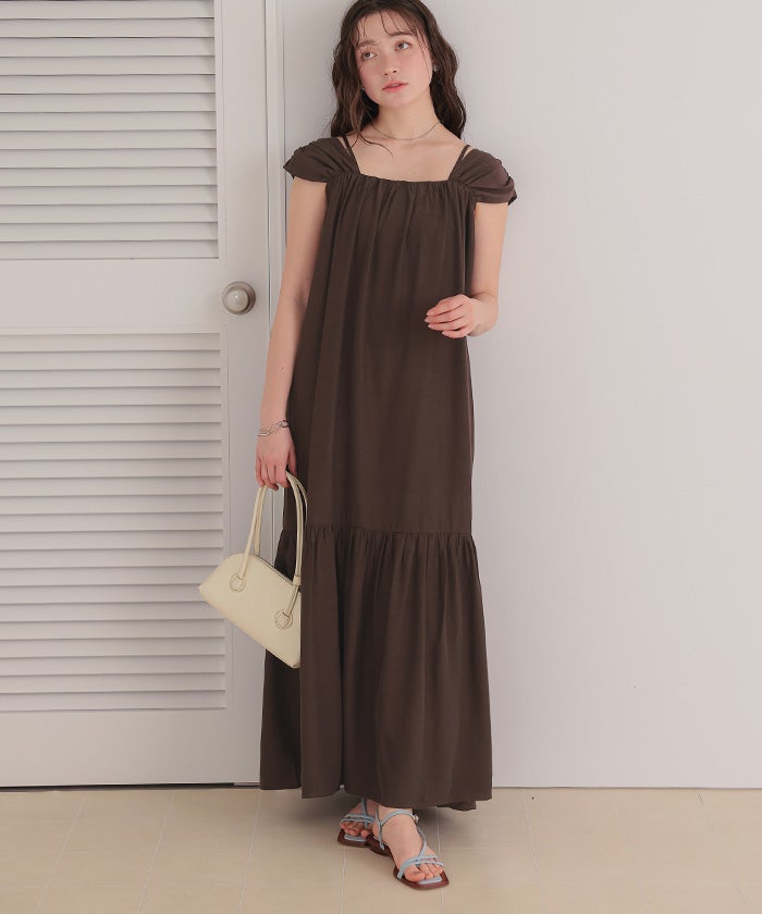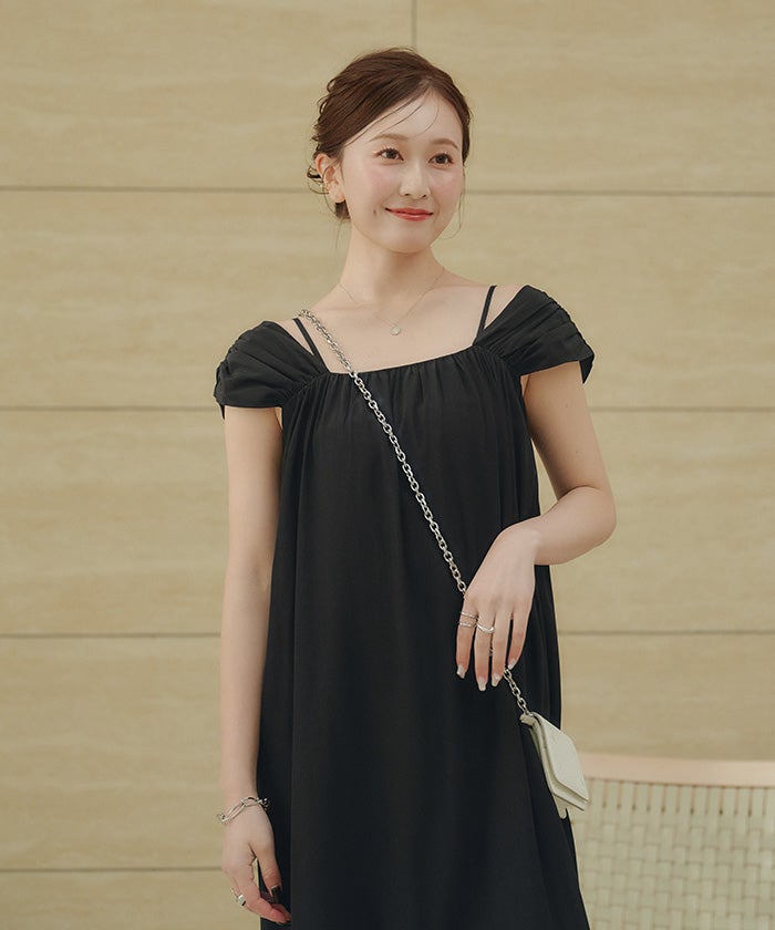 ・太めショルダーと華奢キャミ紐のレイヤードデザインが新鮮な2wayワンピース