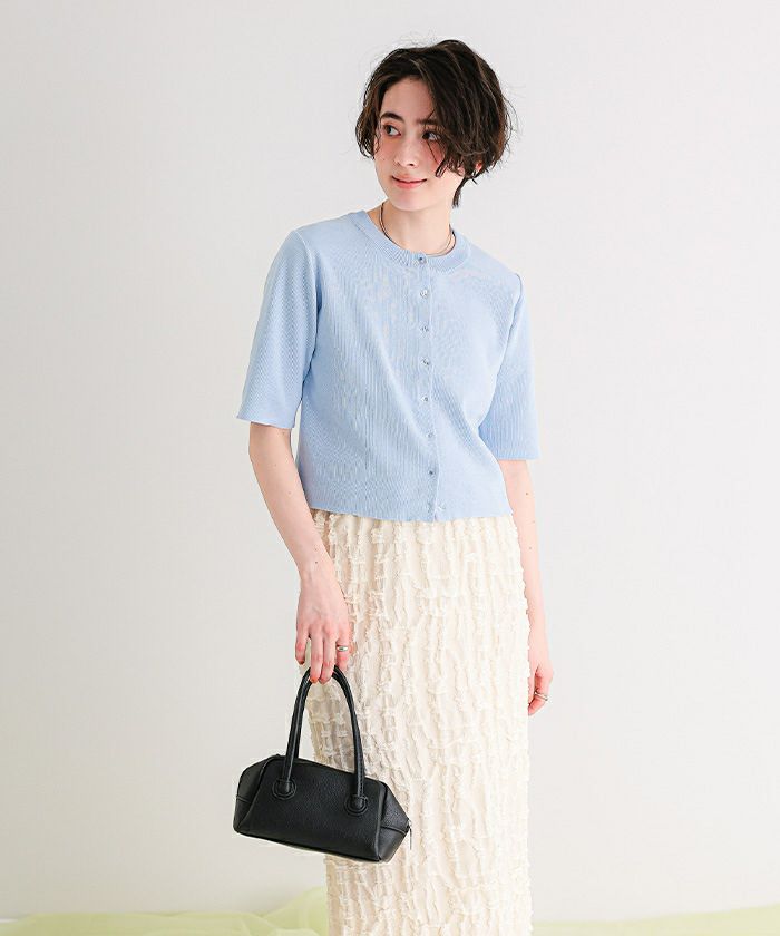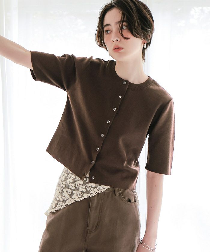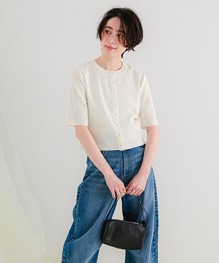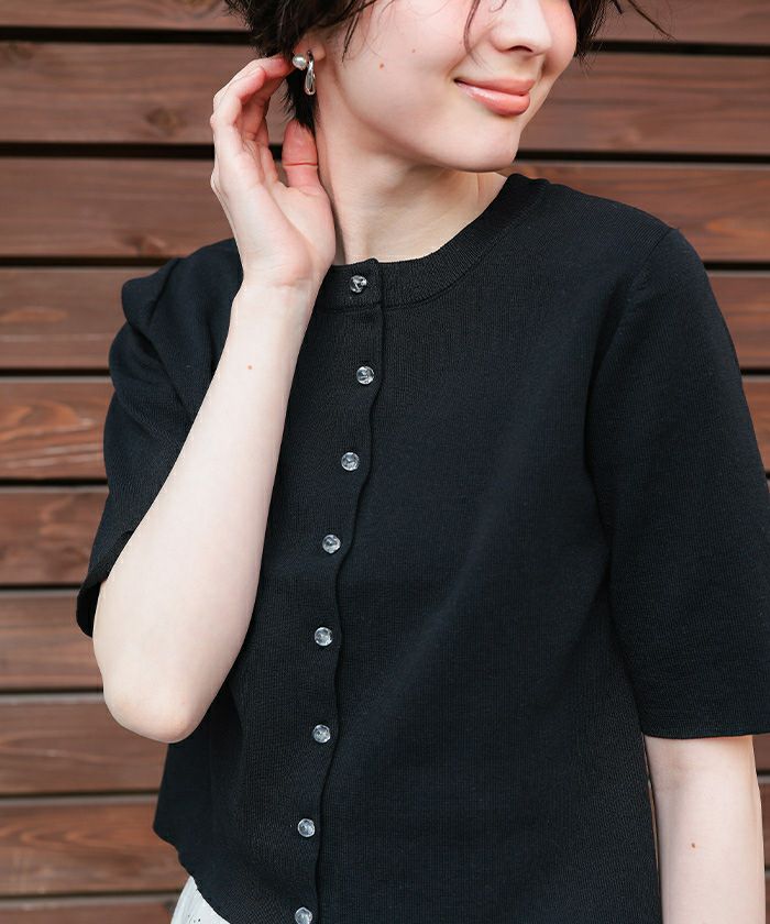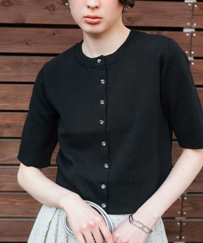 クリア釦UVケア半袖ニットカーディガン