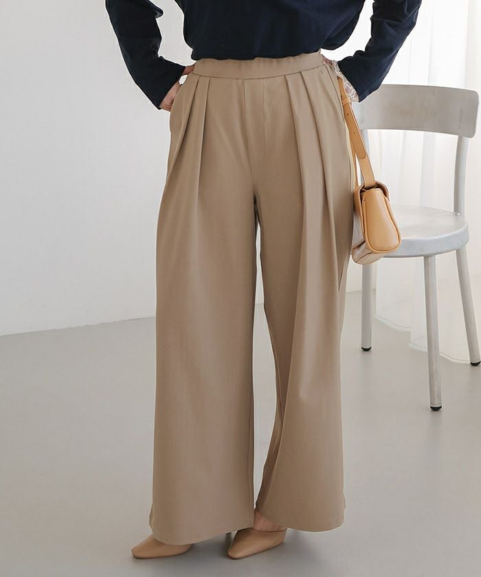・ツータックデザインを入れたワイドシルエットのイージーパンツ