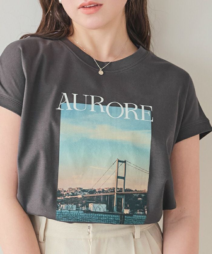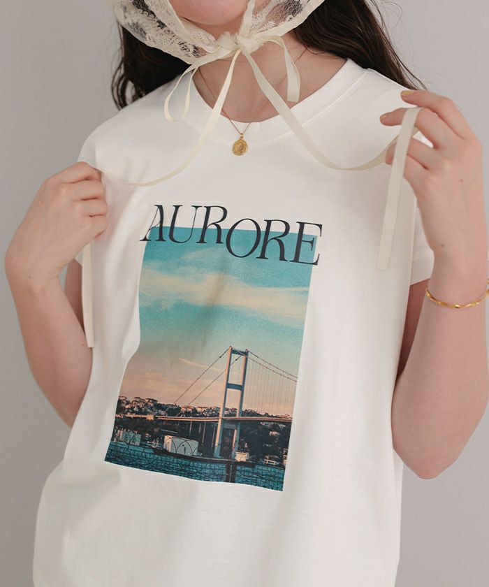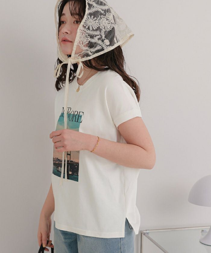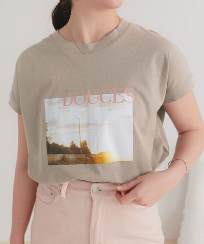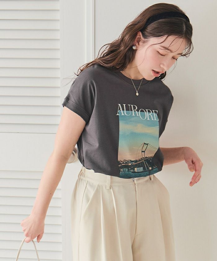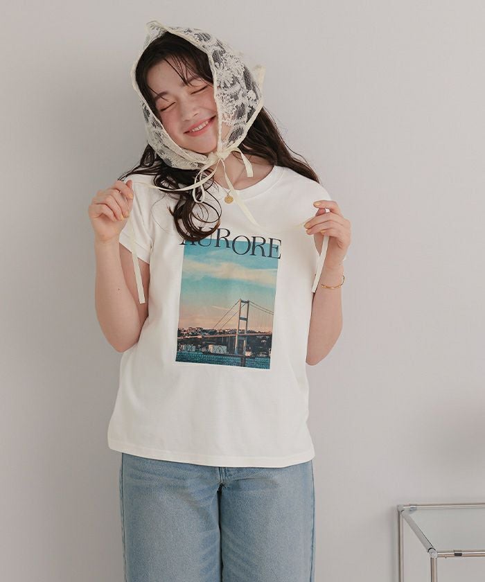 ・視線を惹くフォトプリントがコーデの主役に。甘さの中に程よい大人ムードを添える一枚