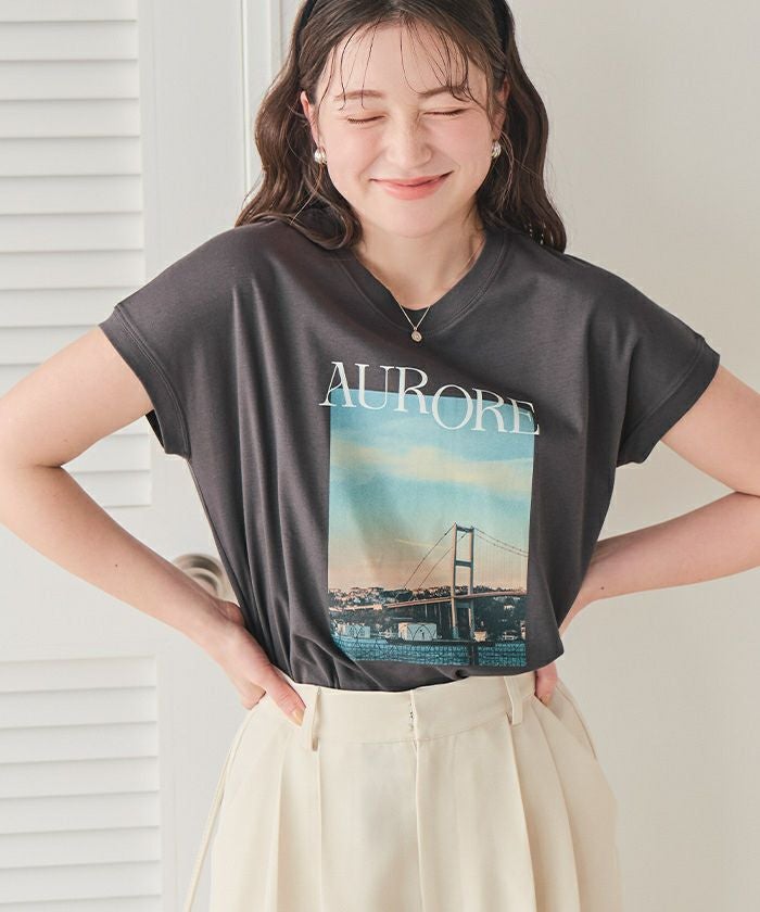 汗染み防止フォトプリントフレンチスリーブトップス【メール便可/100】