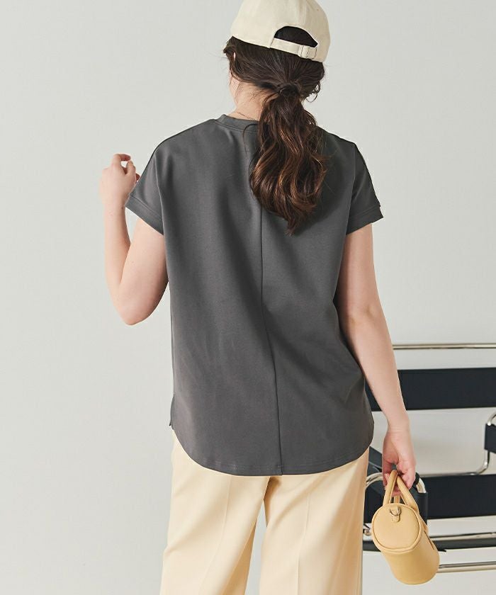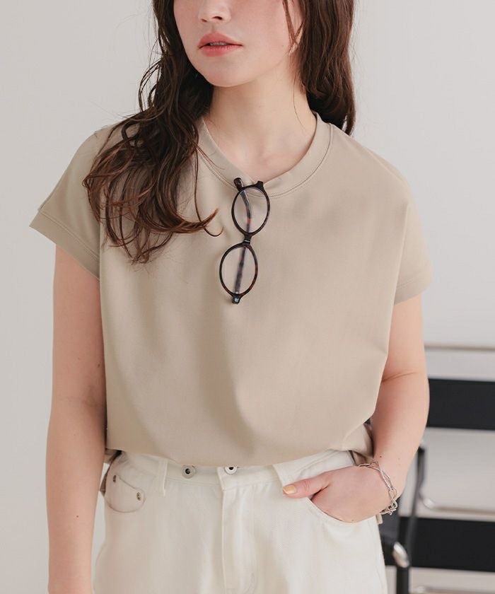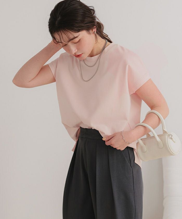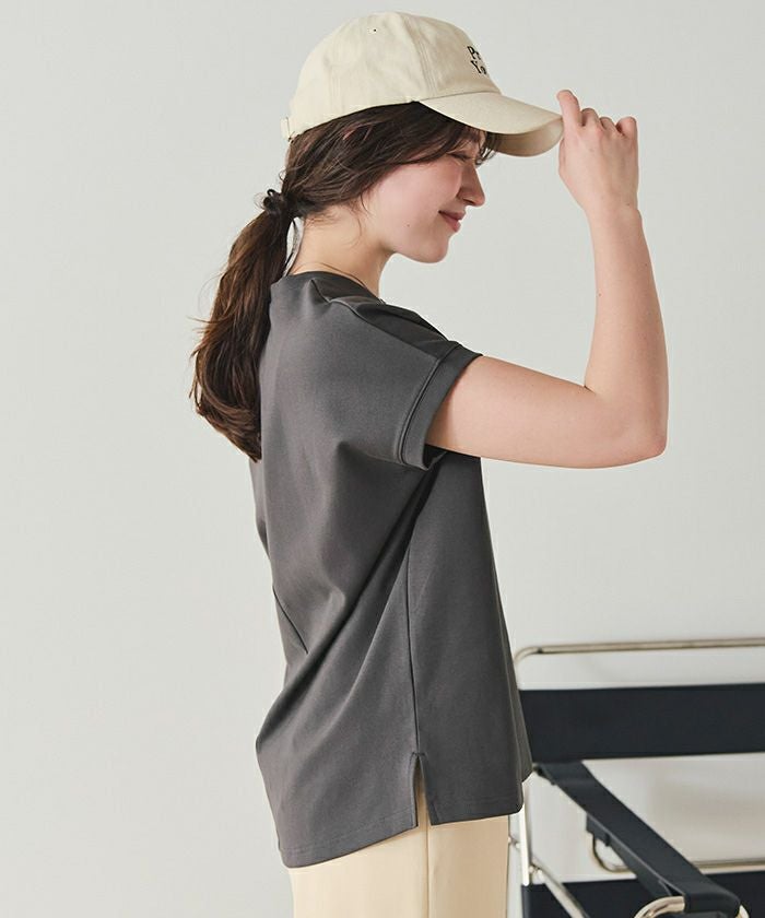 ・汗染み防止と接触冷感の機能性付きカットソー素材で、暑い季節も快適さをキープ